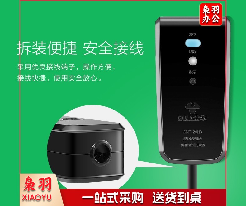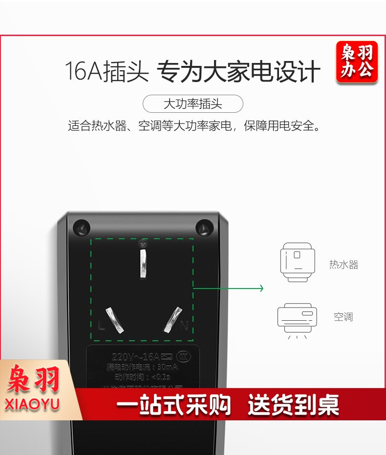 公牛漏电保护插头防漏电插排防触电漏保带开关10A/16A热水器空调大功率接线浴室卫生间漏电保护器插座 GN-T-20L 10A自接线普通款