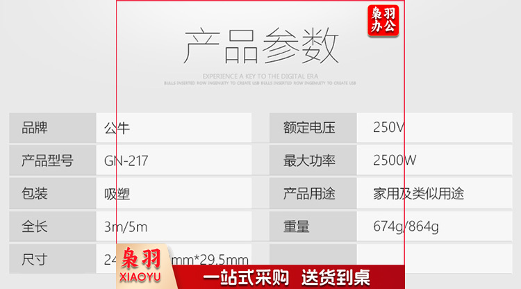 公牛(BULL)GN-217 过载保护插座/插线板/插排/排插/接线板/拖线板 8位总控全长3米