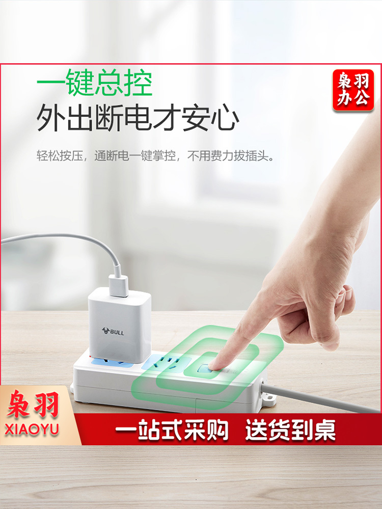 公牛(BULL)新国标无线插座 2位总控排插/拖线板/电源接线板GN-412K (需自行配电源线和插头)