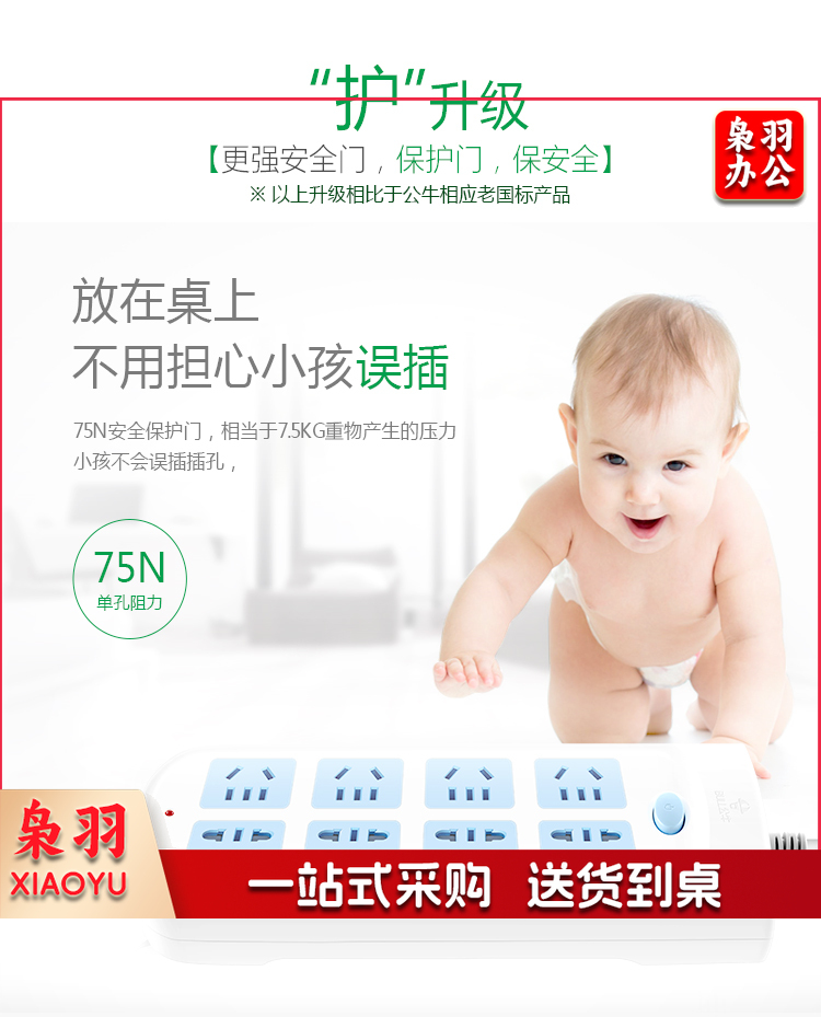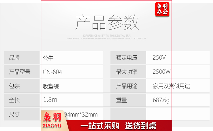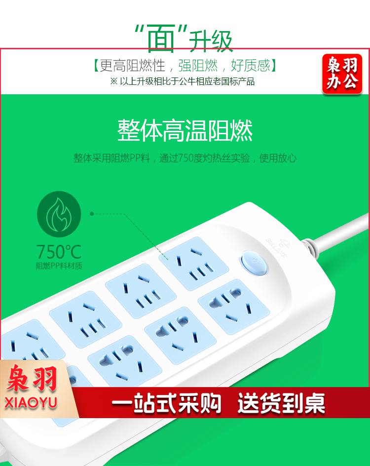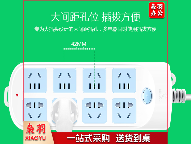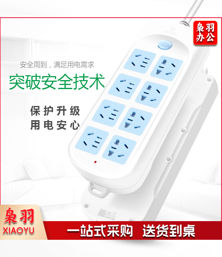 公牛(BULL)超功率保护新国标插座/插线板/插排/排插/接线板/拖线板 8位总控全长1.8米 GN-604