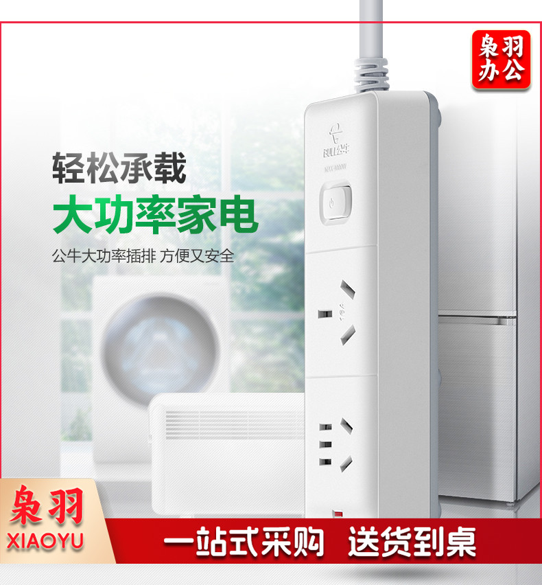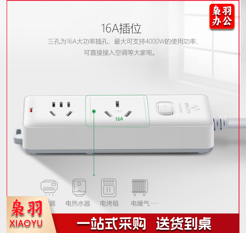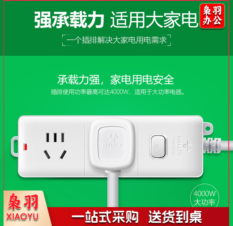 公牛(BULL)GN-606D 拖线板接线板插排 大功率空调 16A大插头 1.8米