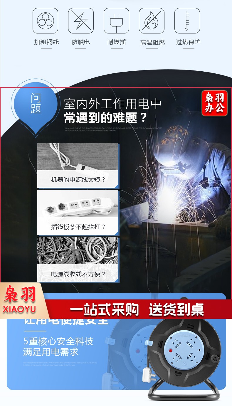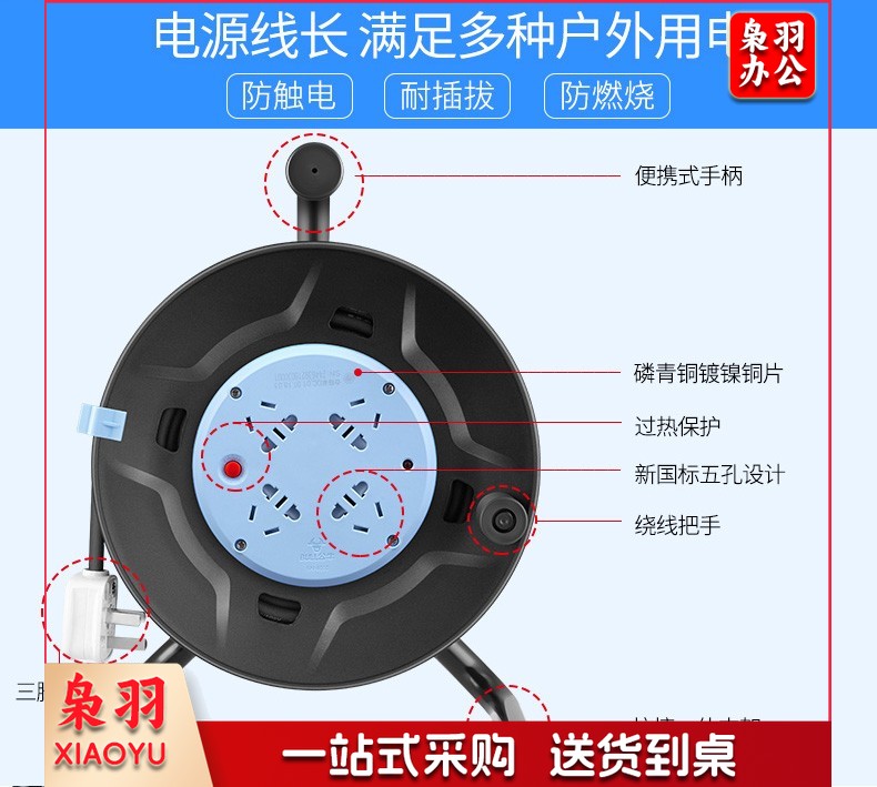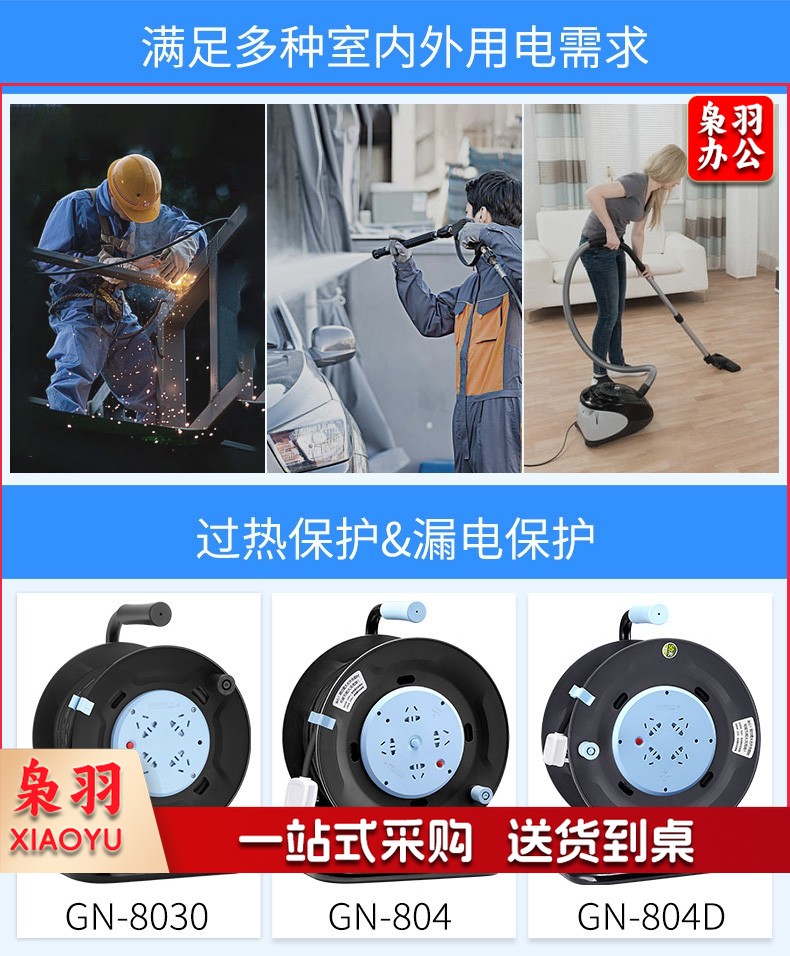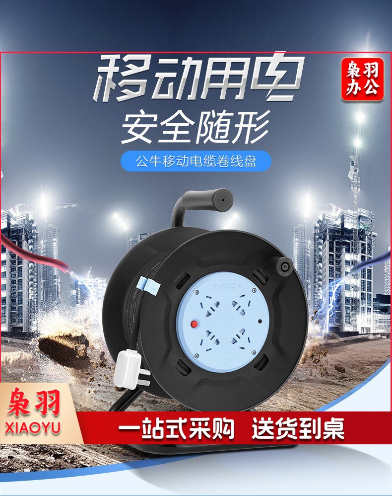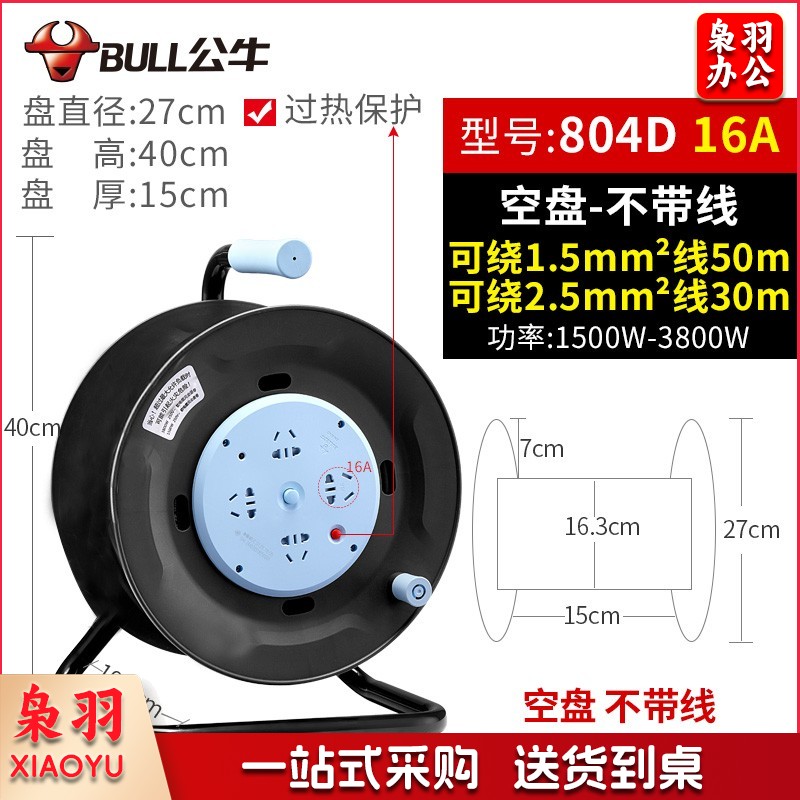 公牛(BULL)GN-8030工程接线盘移动电缆电线卷线盘/盘线轴工程地拖绕线盘拖线盘自接线 4位总控全长20米