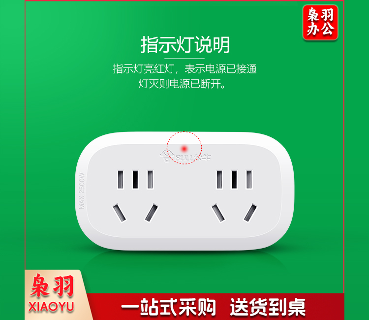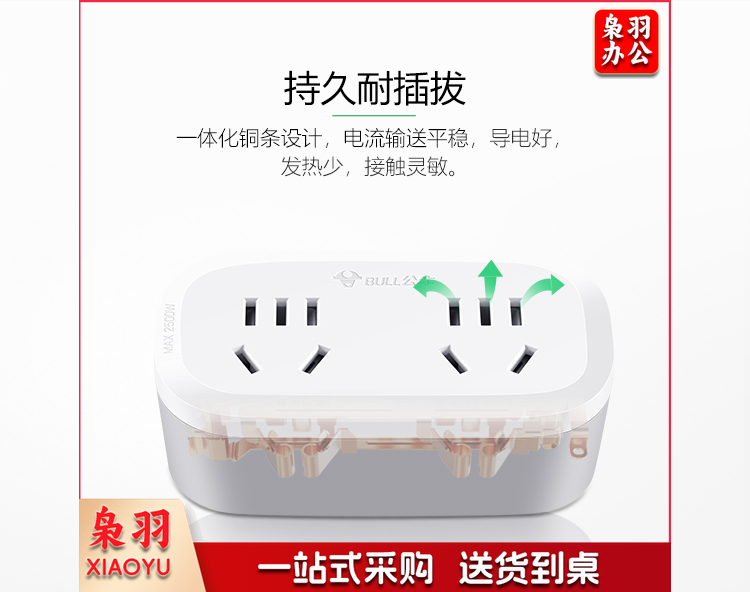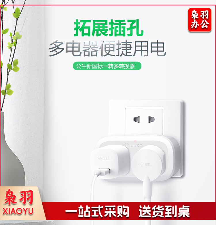 公牛(BULL)一转二插座/转换插头/电源转换器 适用于卧室、厨房 2位无线转换插座 GN-903