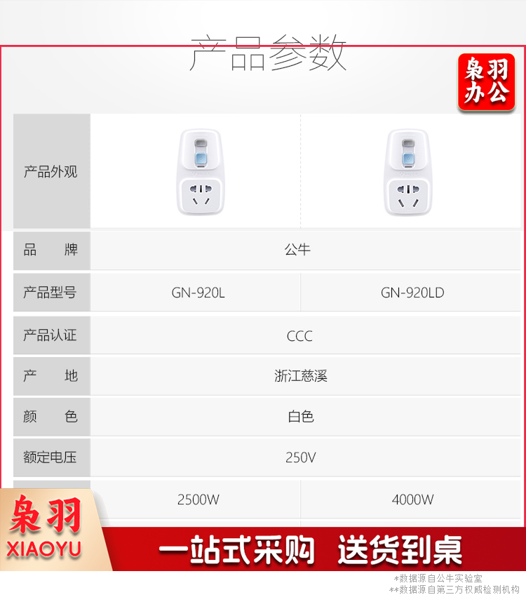 公牛(BULL)新国标防漏电保护器插头16A热水器空调大功率无线插头GN-920LD
