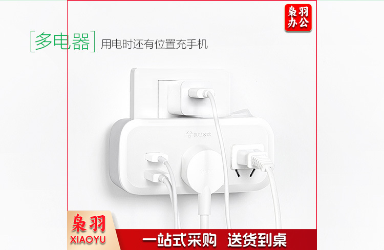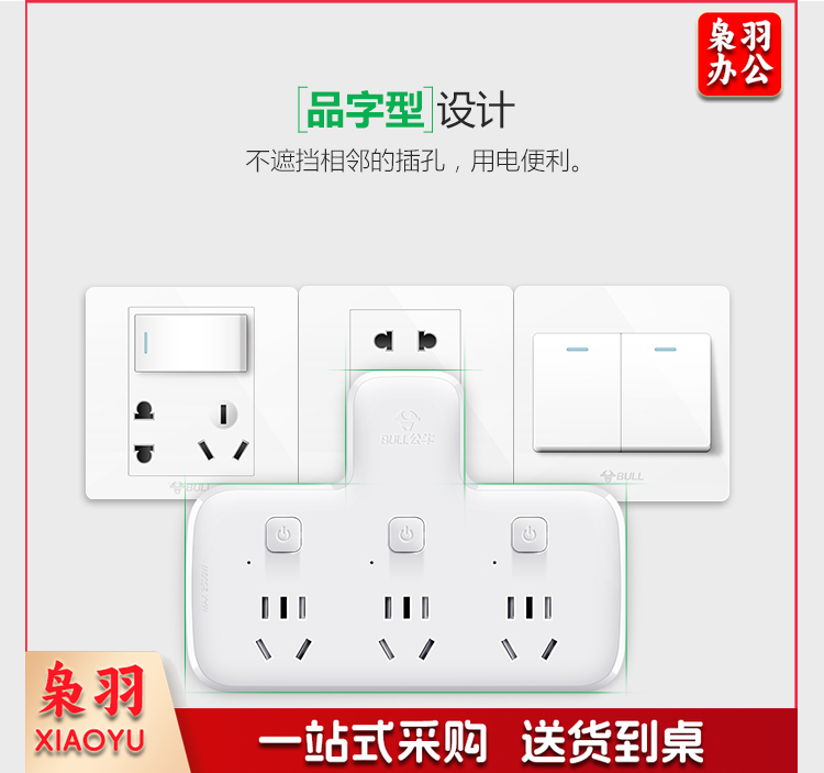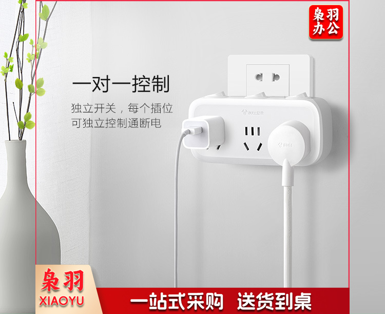 公牛(BULL)插排 多功能插座/一转多保护门/ 扩展转换器 /适用于卧室、厨房 GN-9323 分控开关一转二