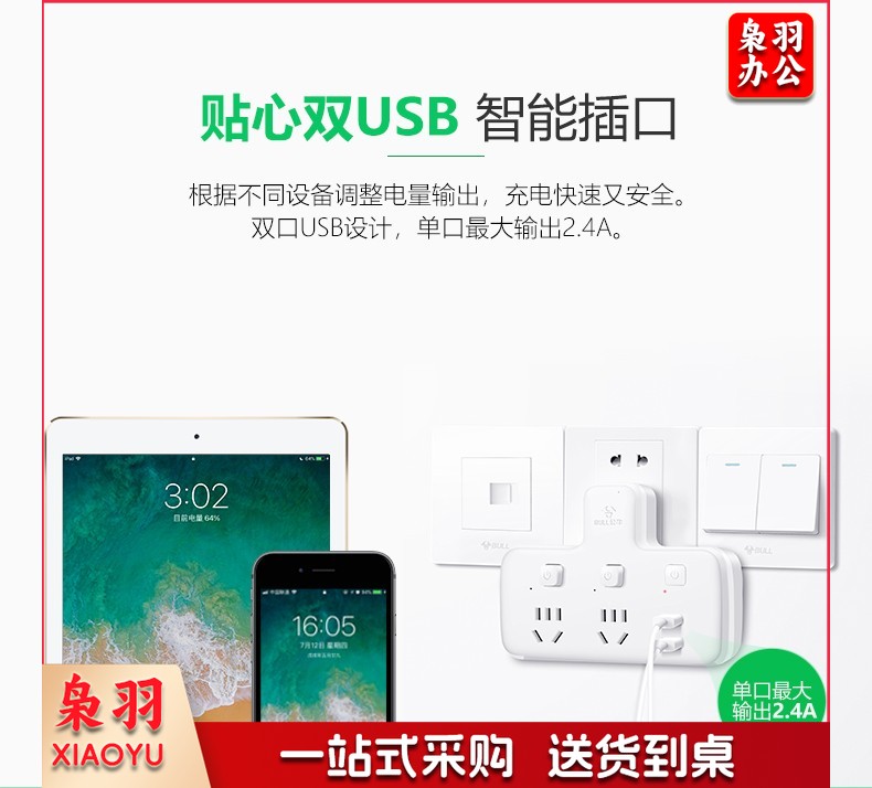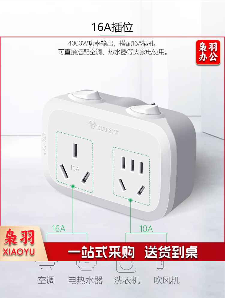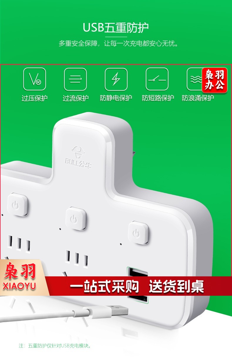 公牛(BULL)插排 多功能插座/一转多保护门/ 扩展转换器 /适用于卧室、厨房 GN-96033 分控开关一转三