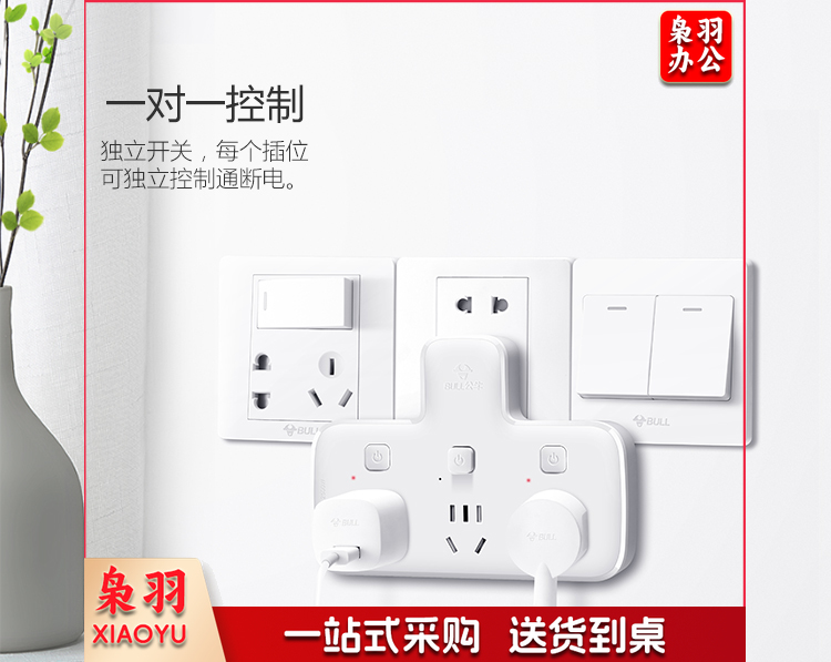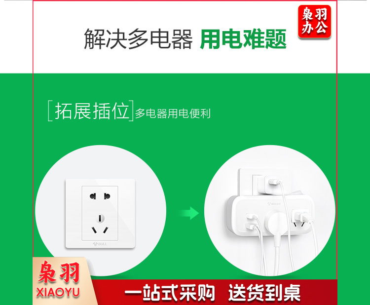 公牛(BULL)插排 多功能插座/一转多保护门/ 扩展转换器 /适用于卧室、厨房 GN-9603 品字形无开关一转三