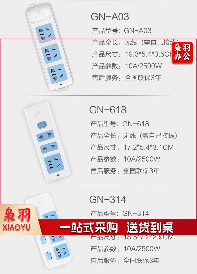 公牛(BULL) 插座新国标/插线板/插排/无线/自行接线/无插头无电源线 GN-A03 3位无线