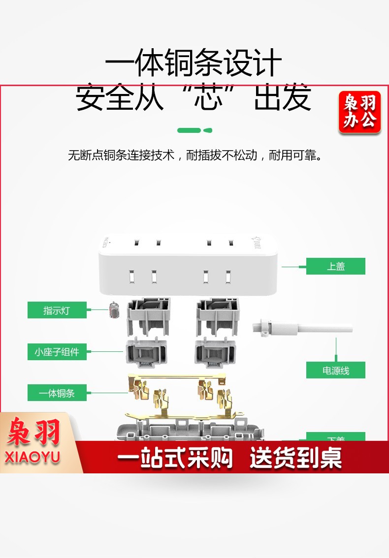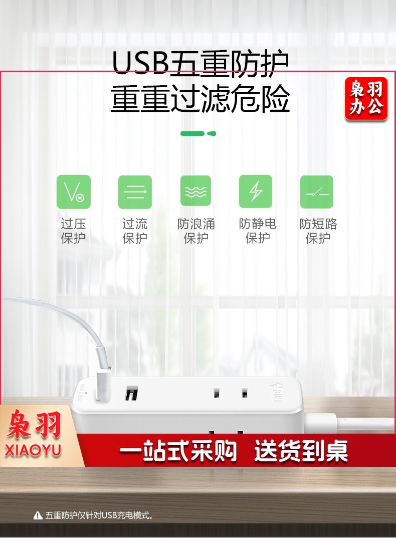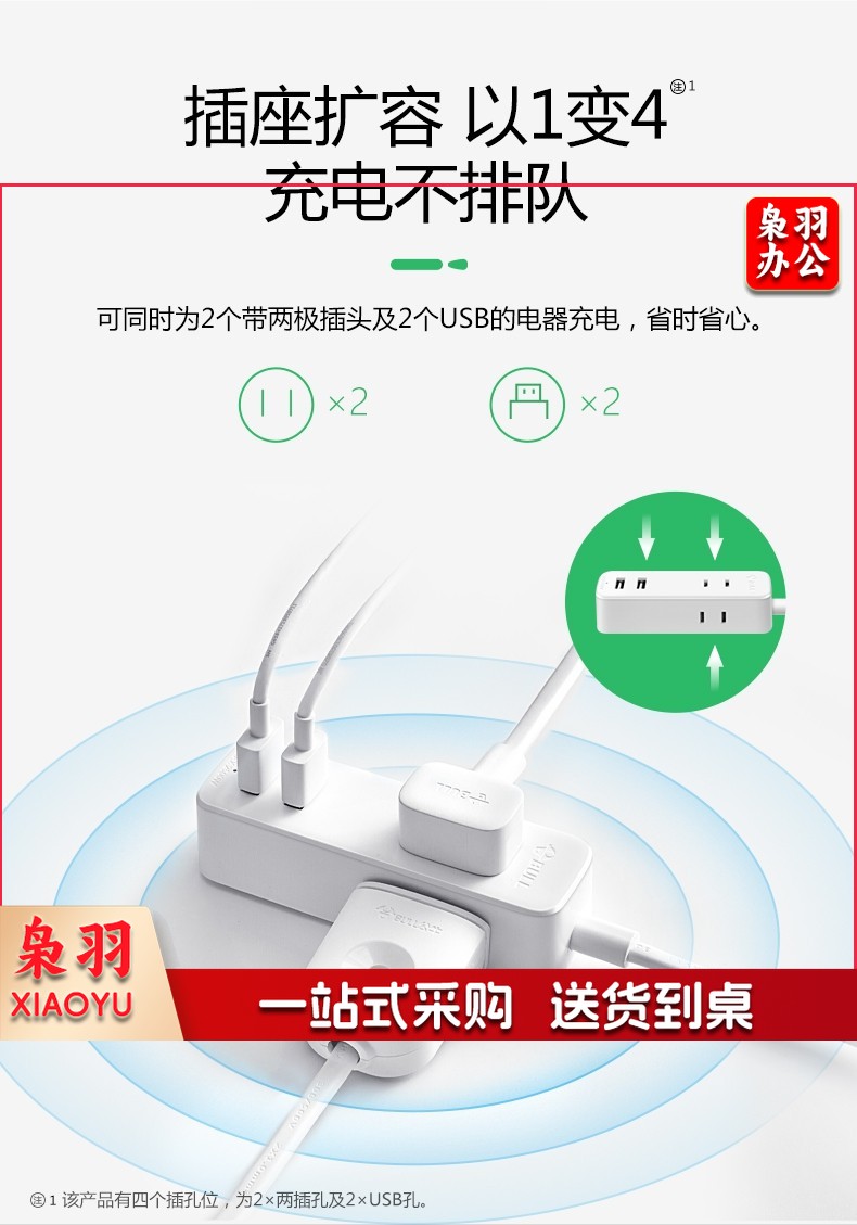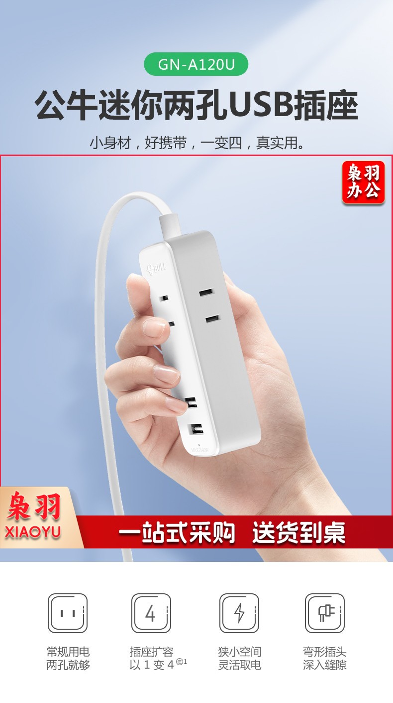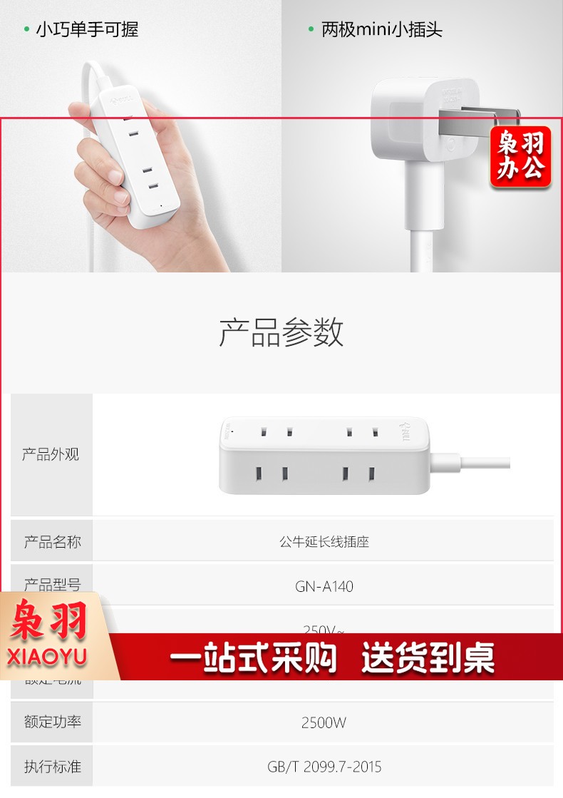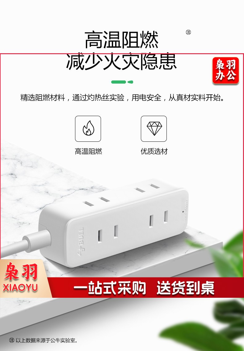 公牛原装两脚插座两项插头两2头相脚孔插排插线板短线二角眼插板带线延长接线板 GN-A140 1.8米4插位