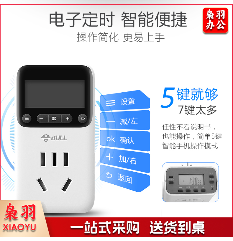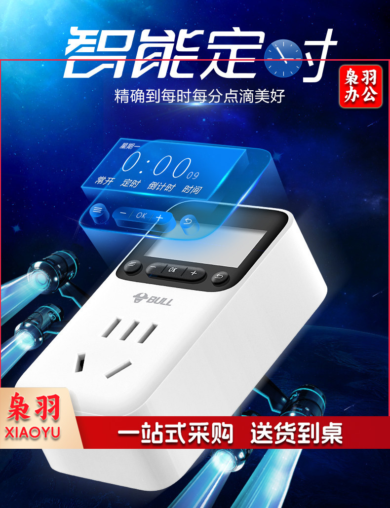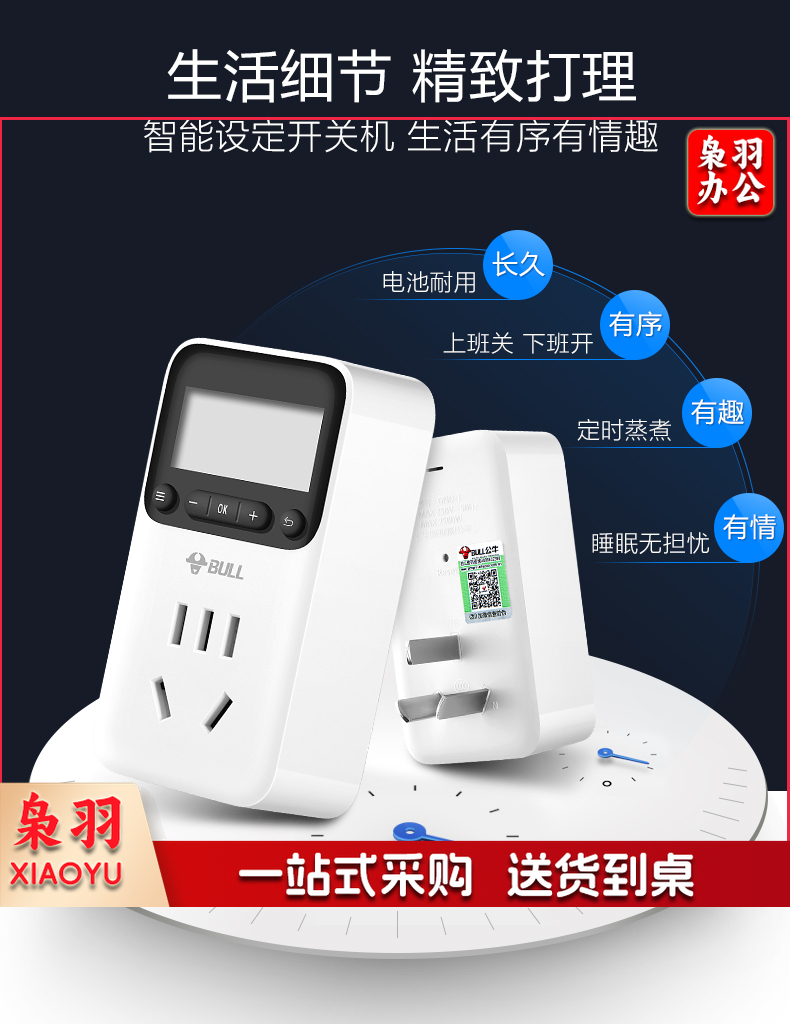 公牛定时器开关插座智能自动断电厨房定时器提醒器电饭煲时控制开关自动循环电动电瓶自行车充电控制器 10A电子式D-1[3脚插头 多功能可循环]
