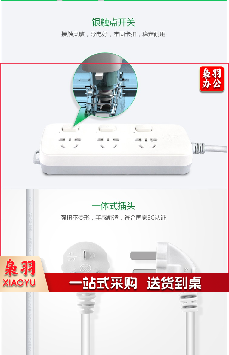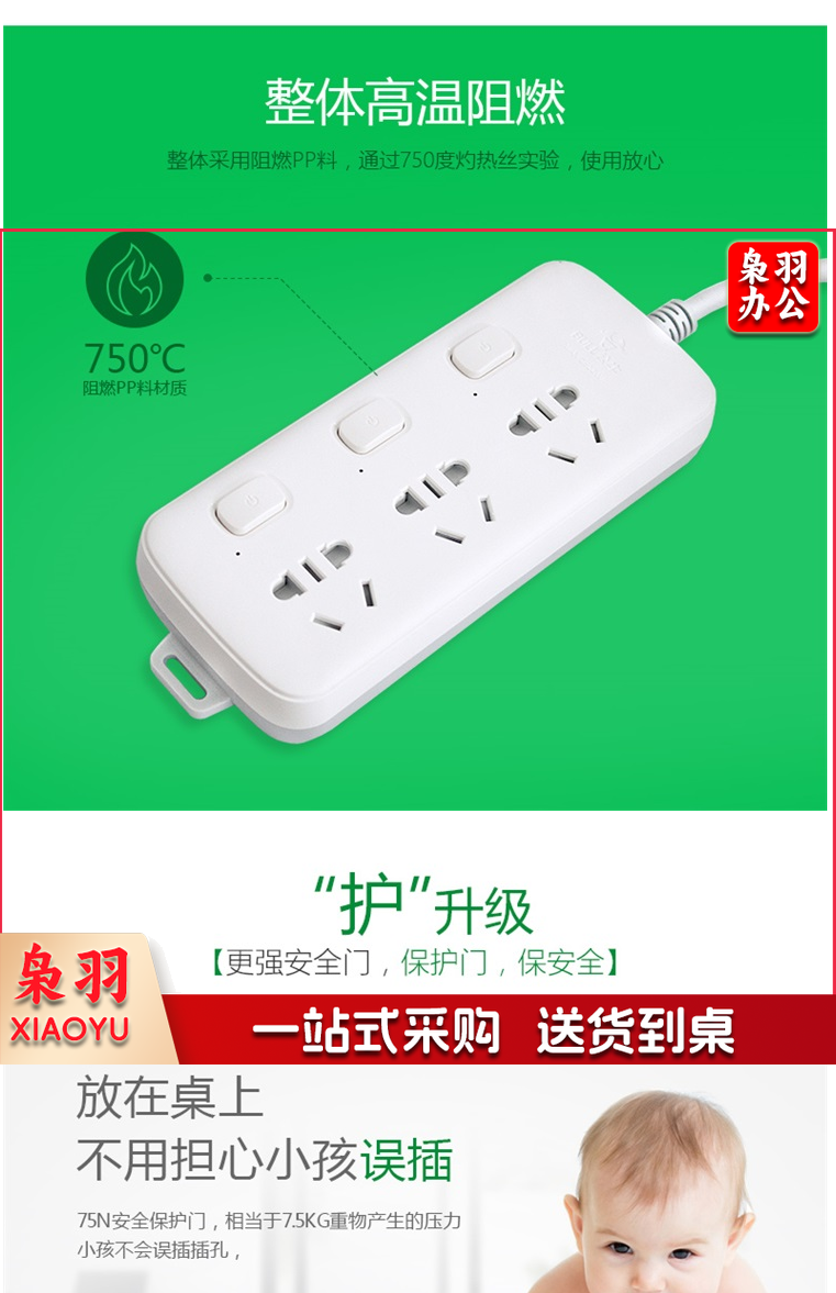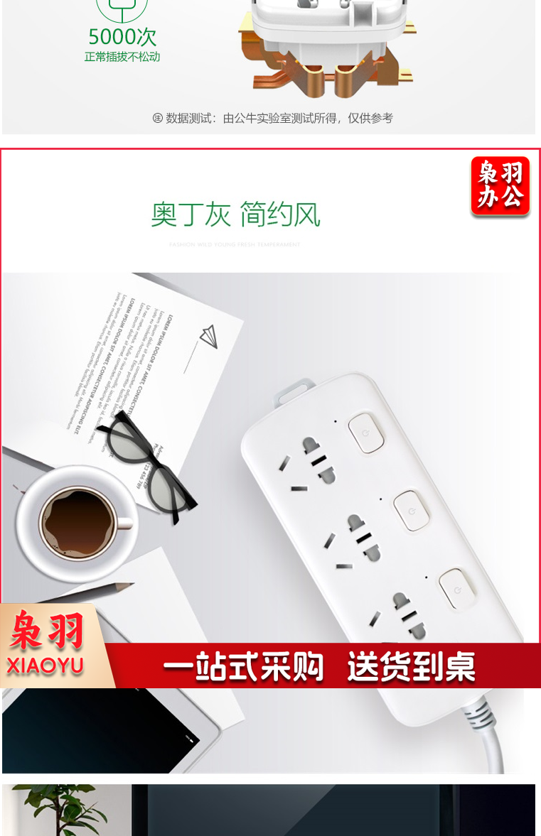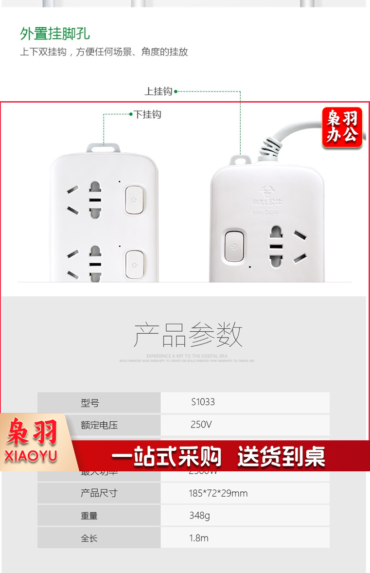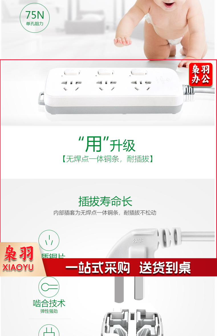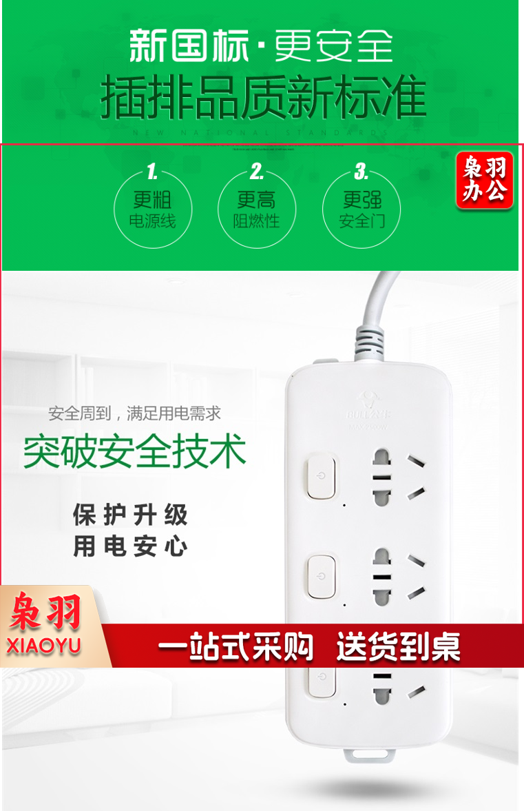 公牛(BULL)新国标插座/插线板/插排/排插/接线板/拖线板 GN-S1033 3位分控全长1.8米