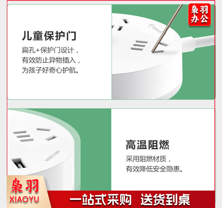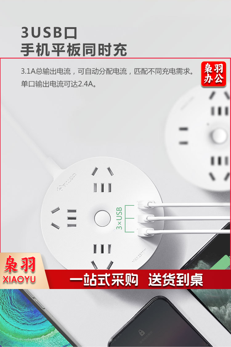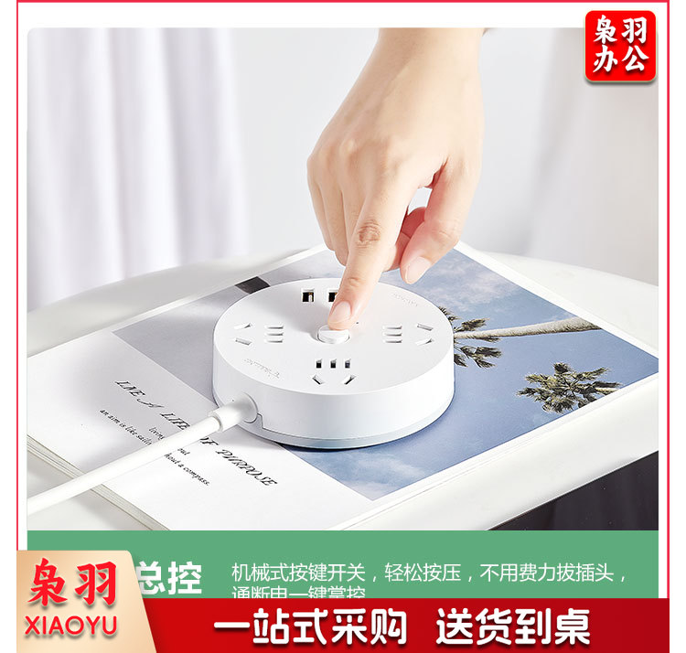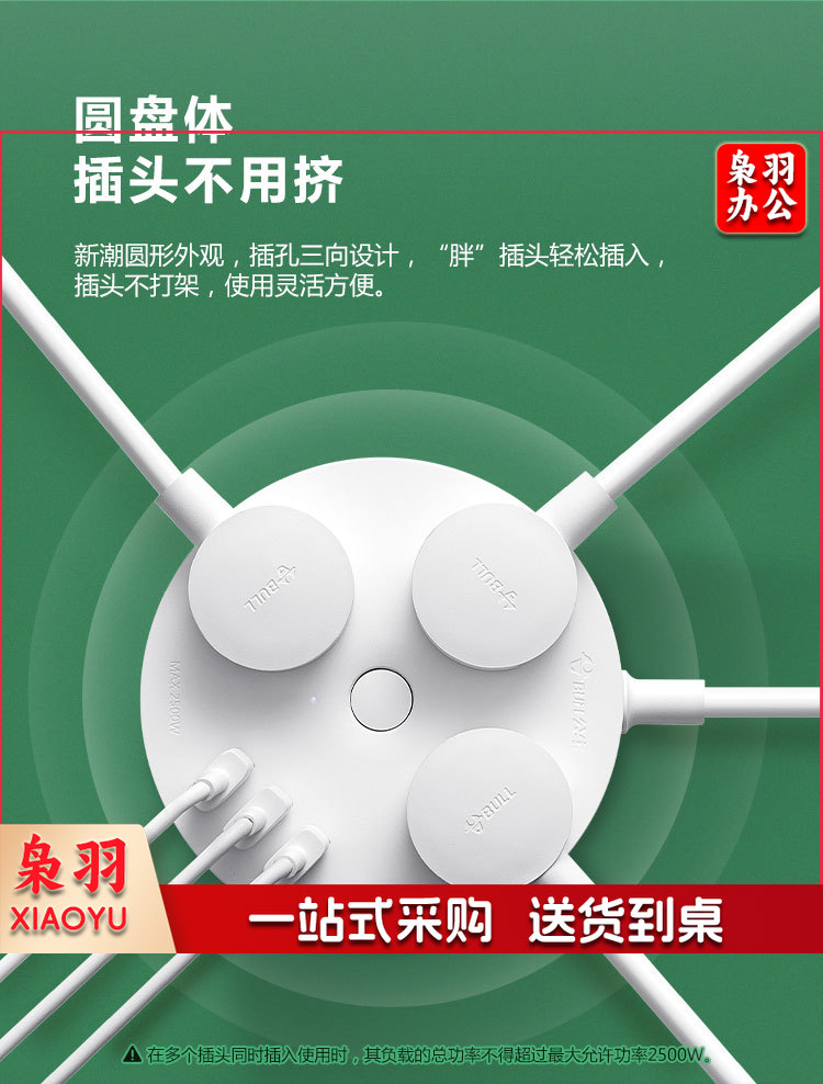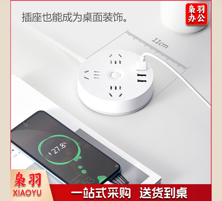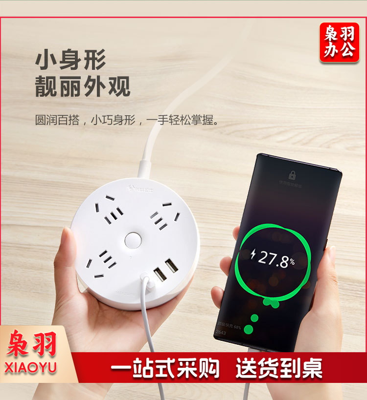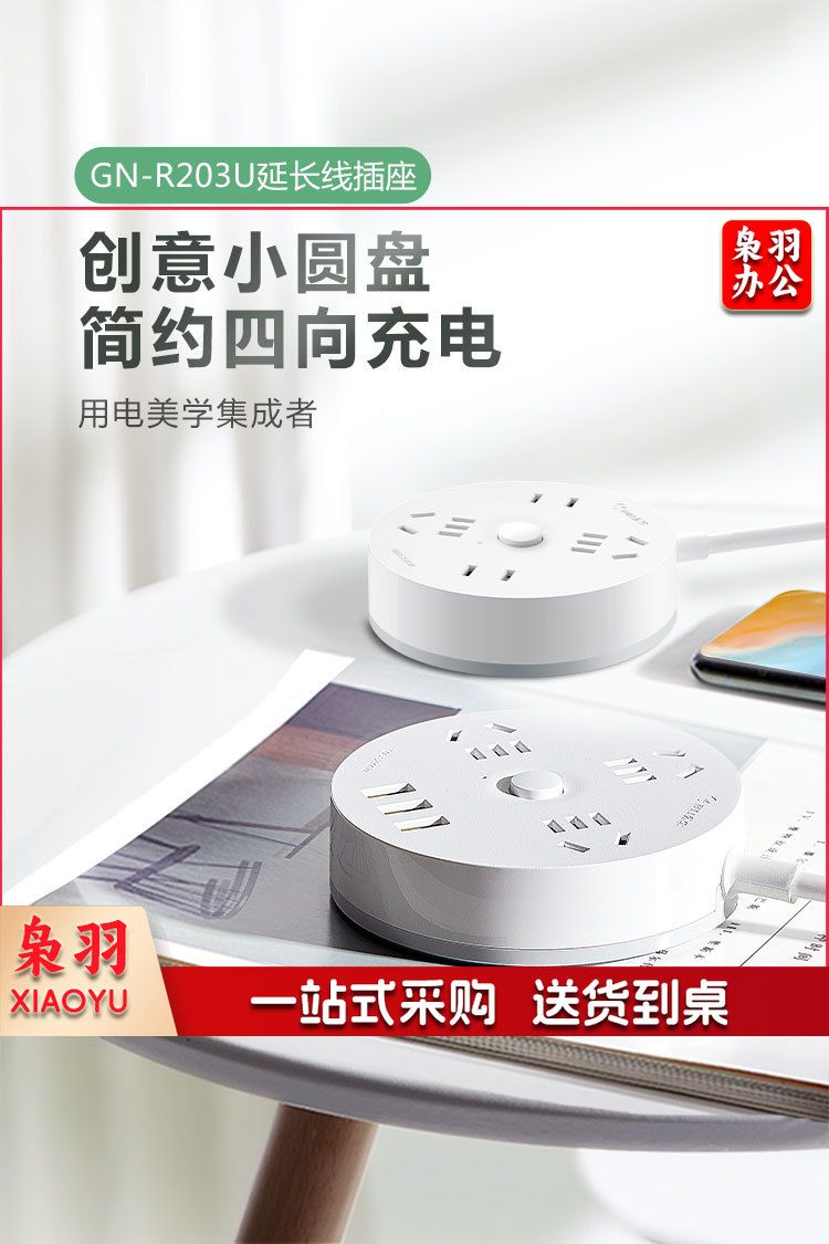 公牛(BULL)插座/插线板/插排/排插/拖线板 圆形插座 3usb接口+3孔总控 1.8米GN-R203U