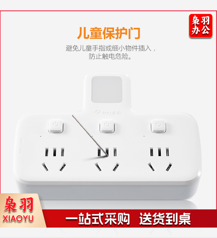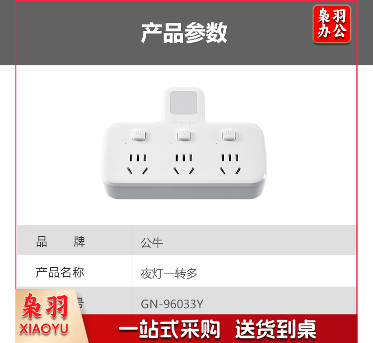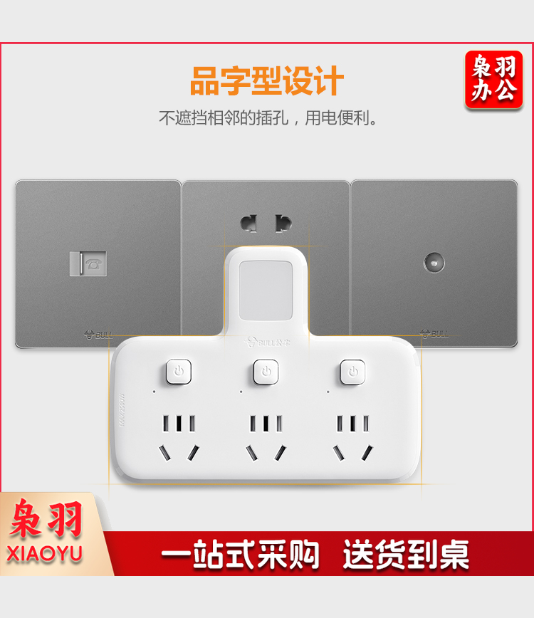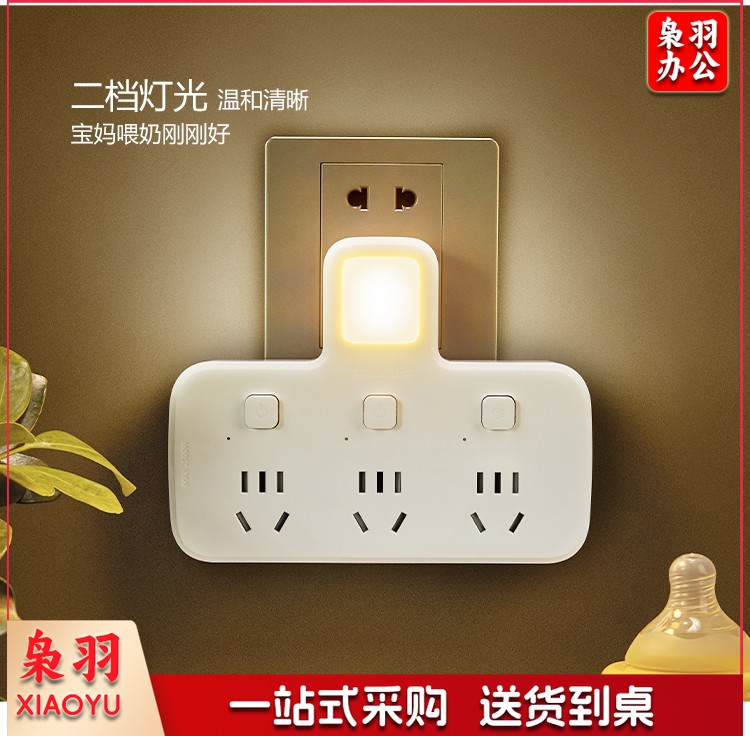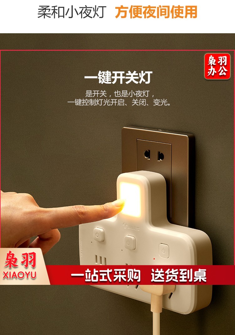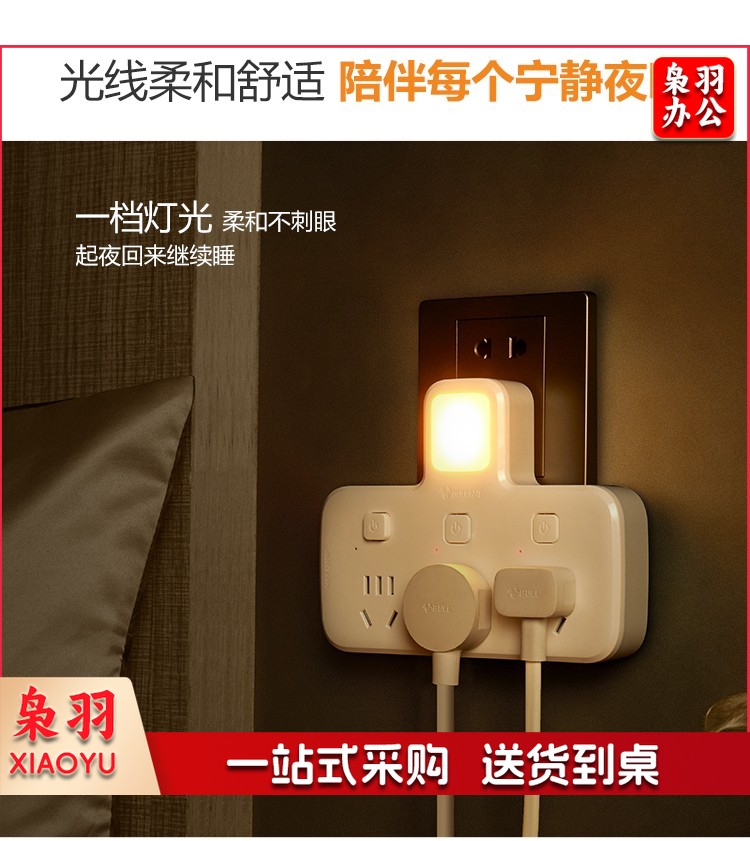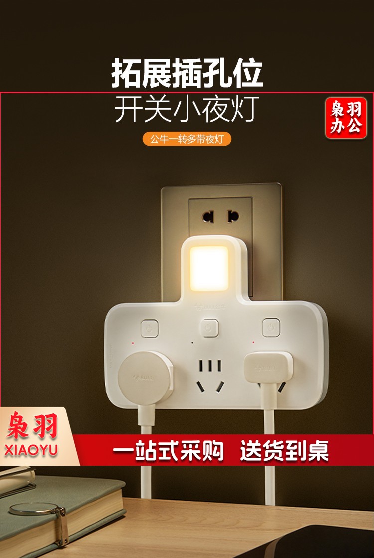 公牛(BULL)转换插头/品字形一转三插座/无线转换插座/电源转换器 适用于卧室厨房 3位分控带夜灯 GN-96033Y