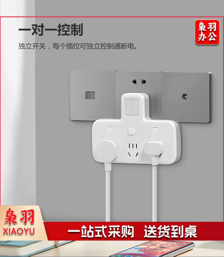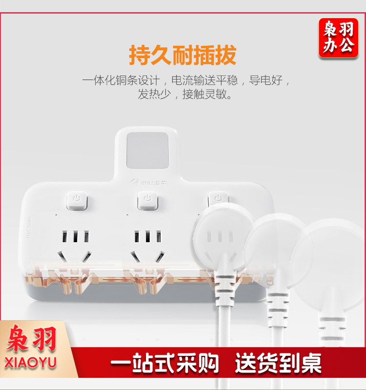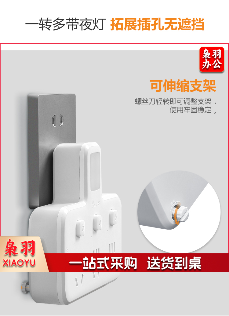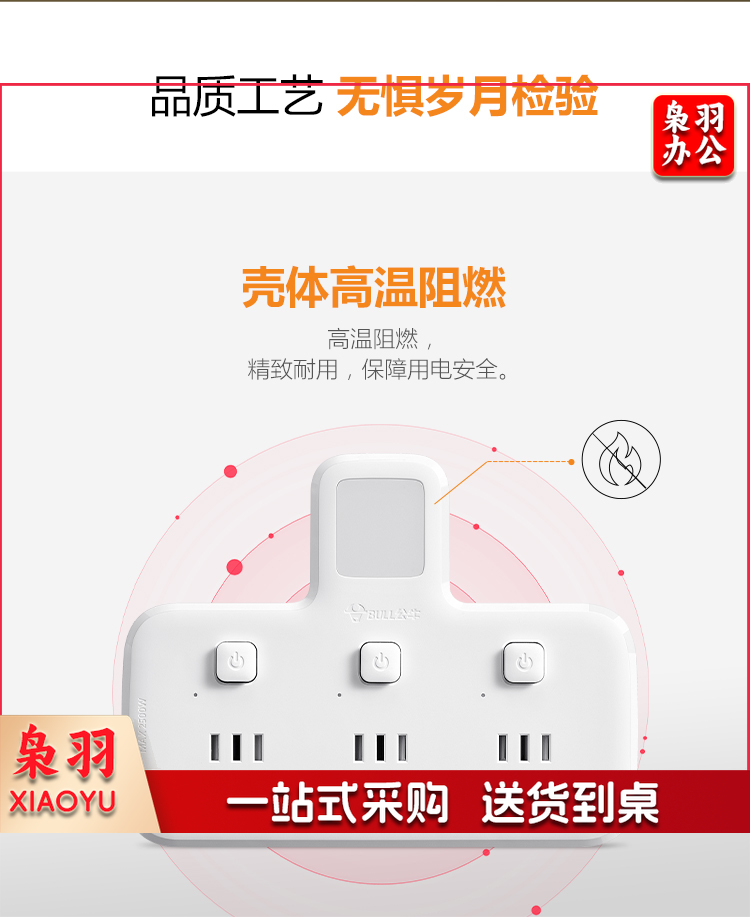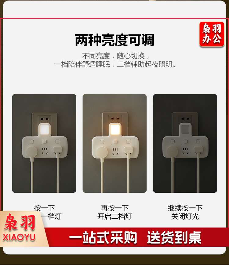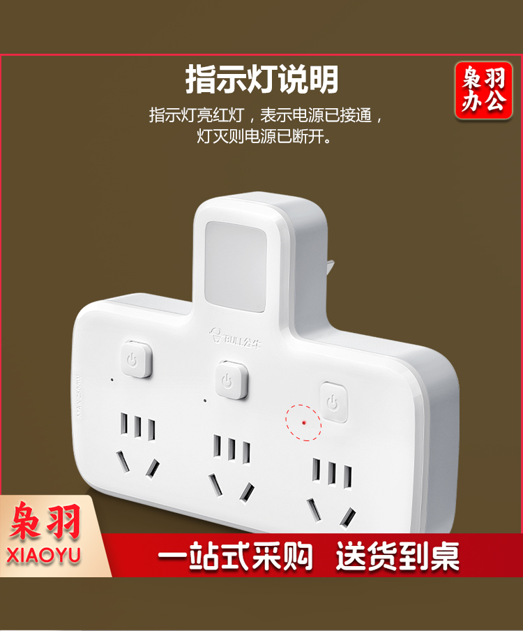 公牛(BULL)转换插头/品字形一转三插座/无线转换插座/电源转换器 适用于卧室厨房 3位分控带夜灯 GN-96033Y