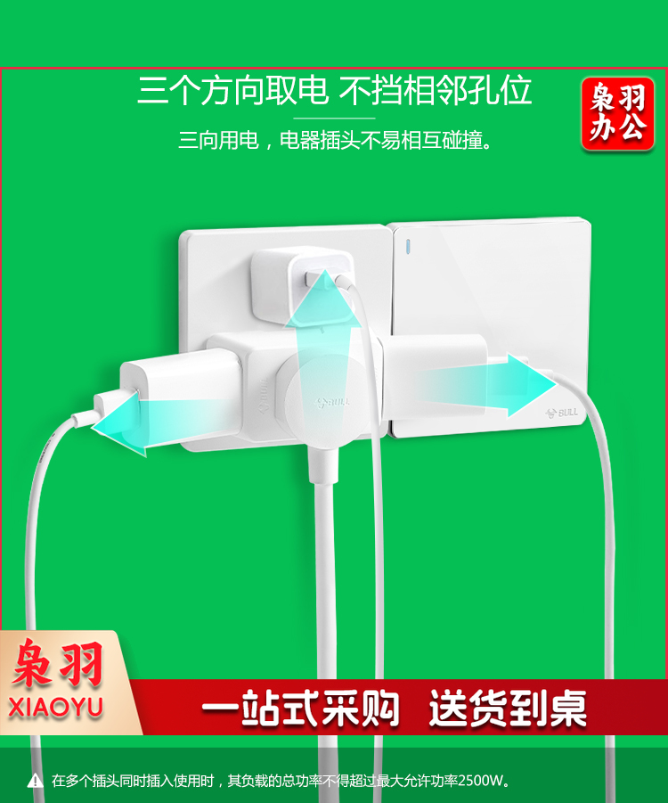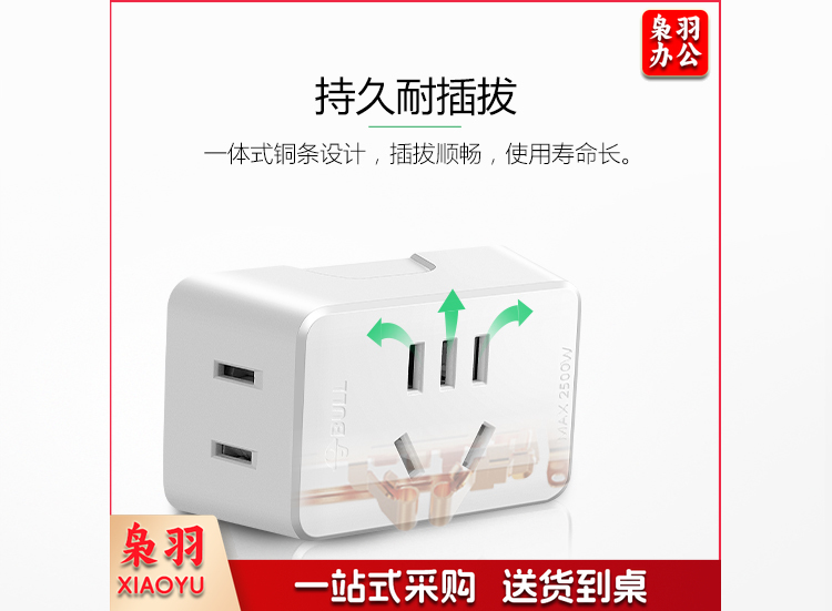 公牛(BULL)一转三插座/转换插头/电源转换器 3位无线转换插座 GN-A221