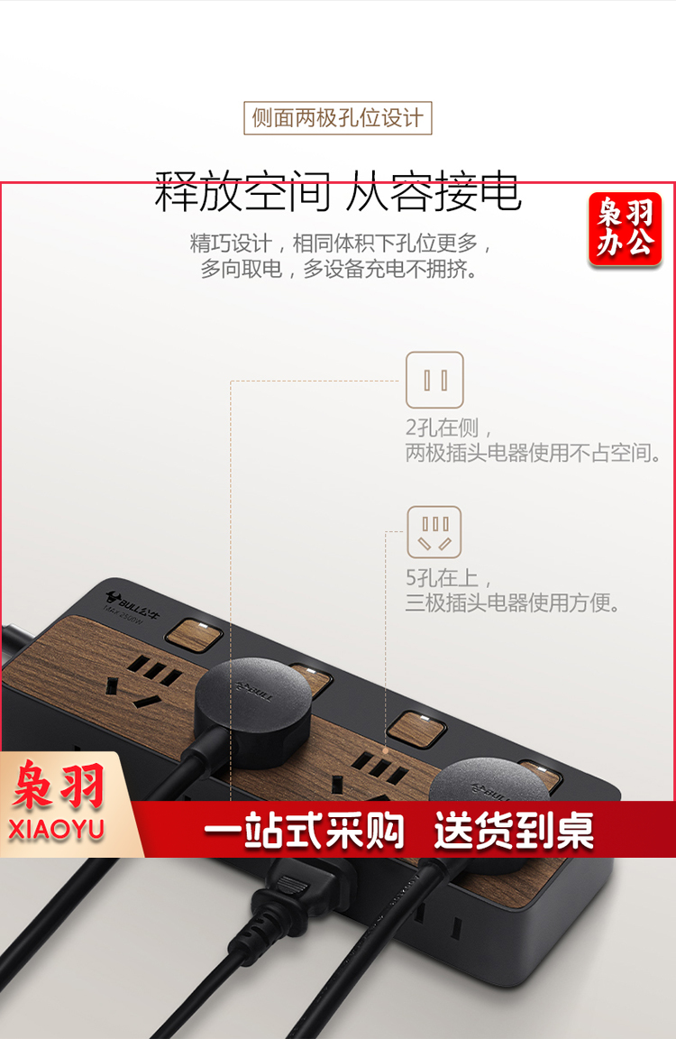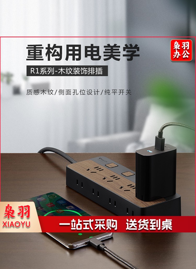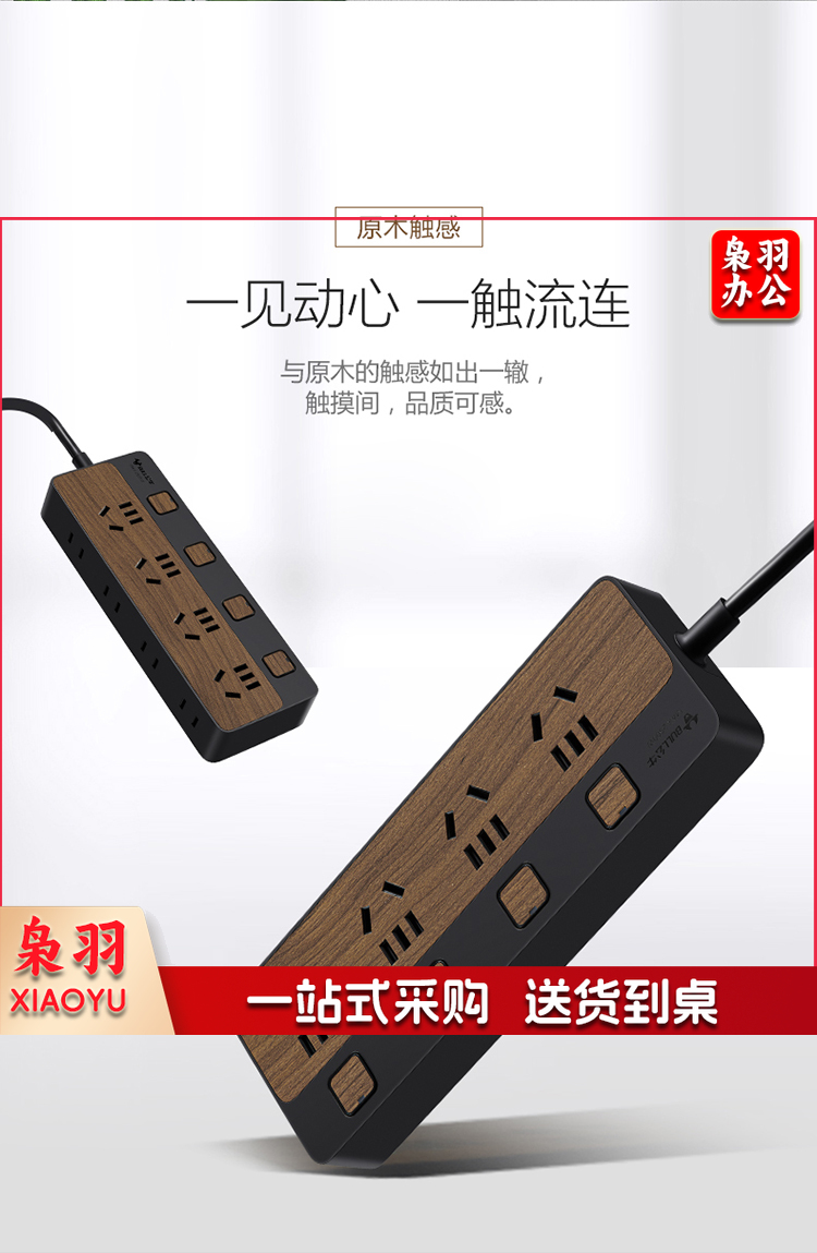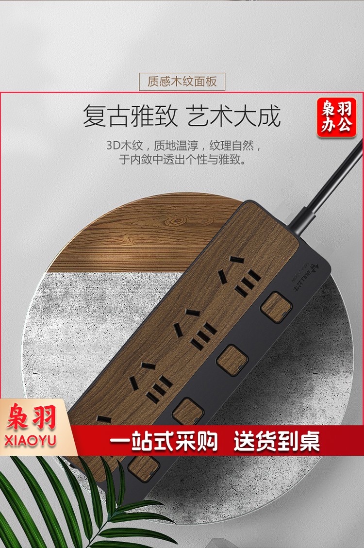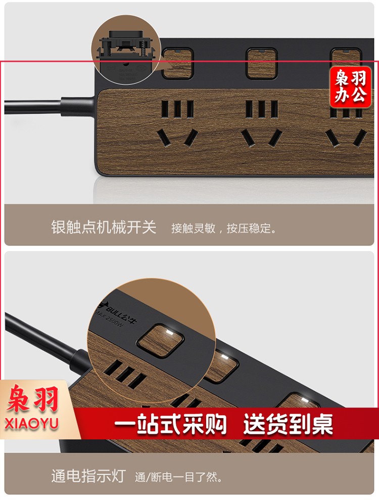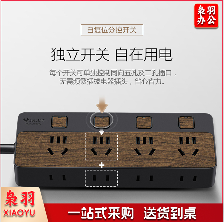 公牛(BULL)新国标插座/插线板/插排/排插/接线板/拖线板 8位分控1.8米 黑色木纹 GN-R1443