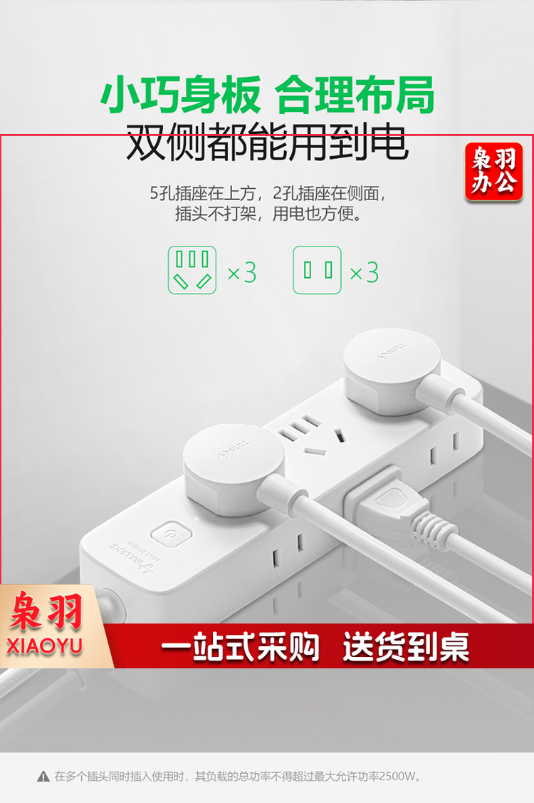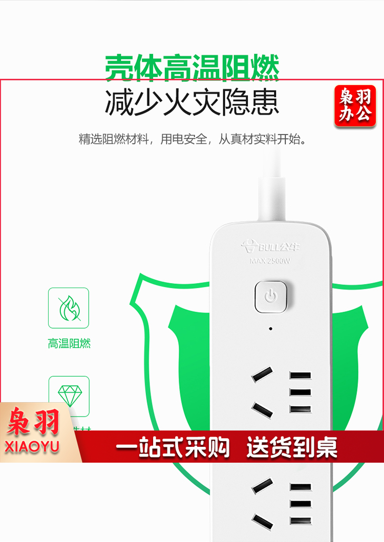 公牛(BULL)新国标插座/插线板/插排/排插/接线板/拖线板 6位总控1.8米 GN-R5330