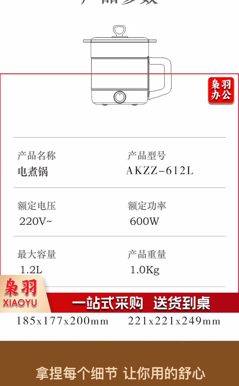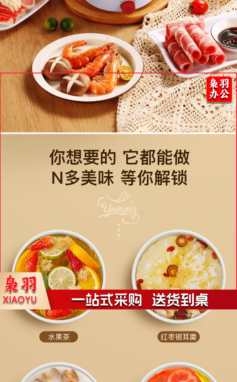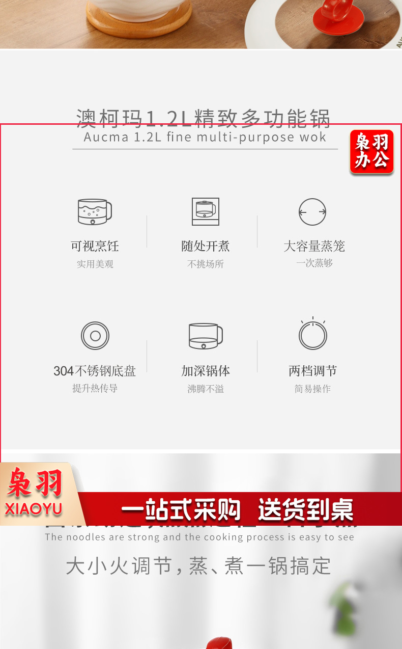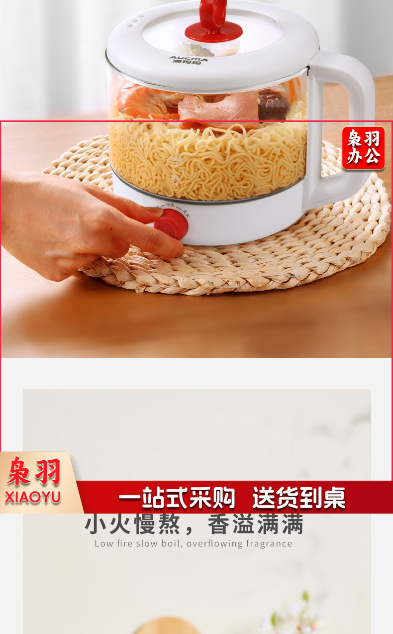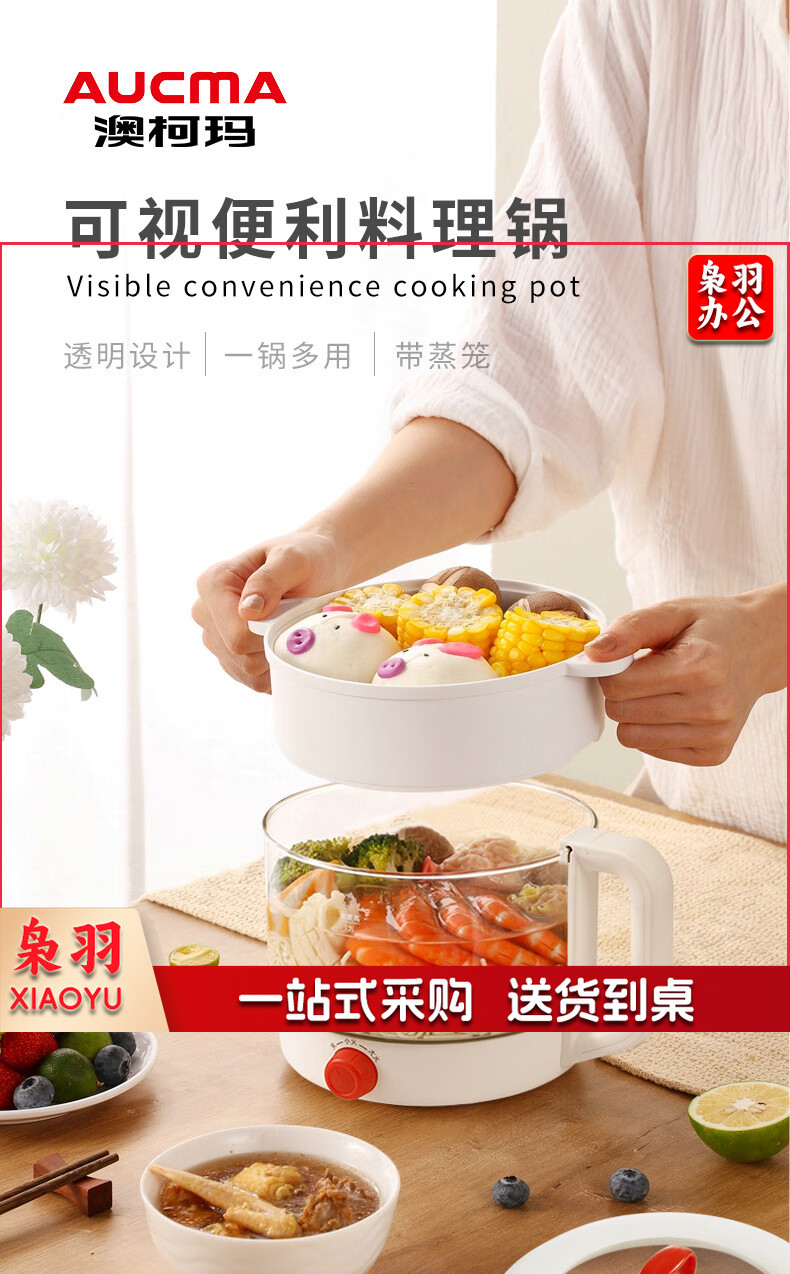 澳柯玛(AUCMA)多功能电煮锅高硼硅玻璃电火锅带蒸笼AKZZ-612L