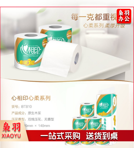 心相印BT810心柔有芯卷筒纸家用卫生纸心心相印厕所纸3层180g