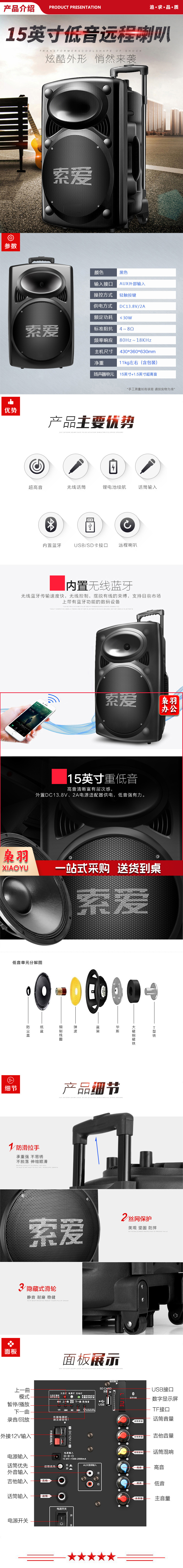 索爱(soaiy)A90 15英寸大功率重低音广场舞音响+双话筒