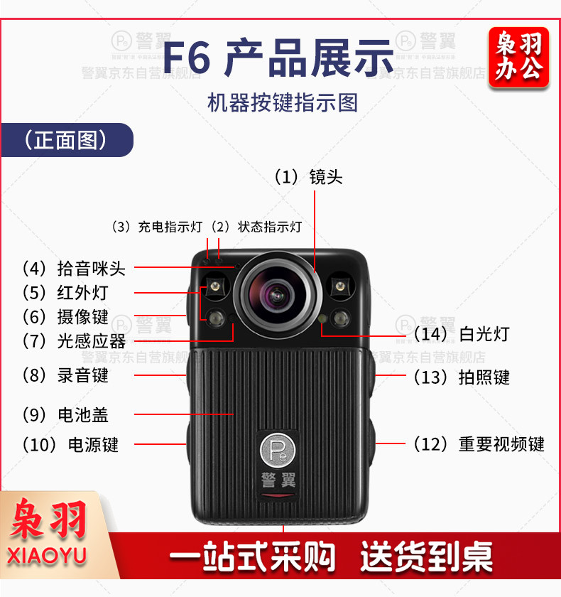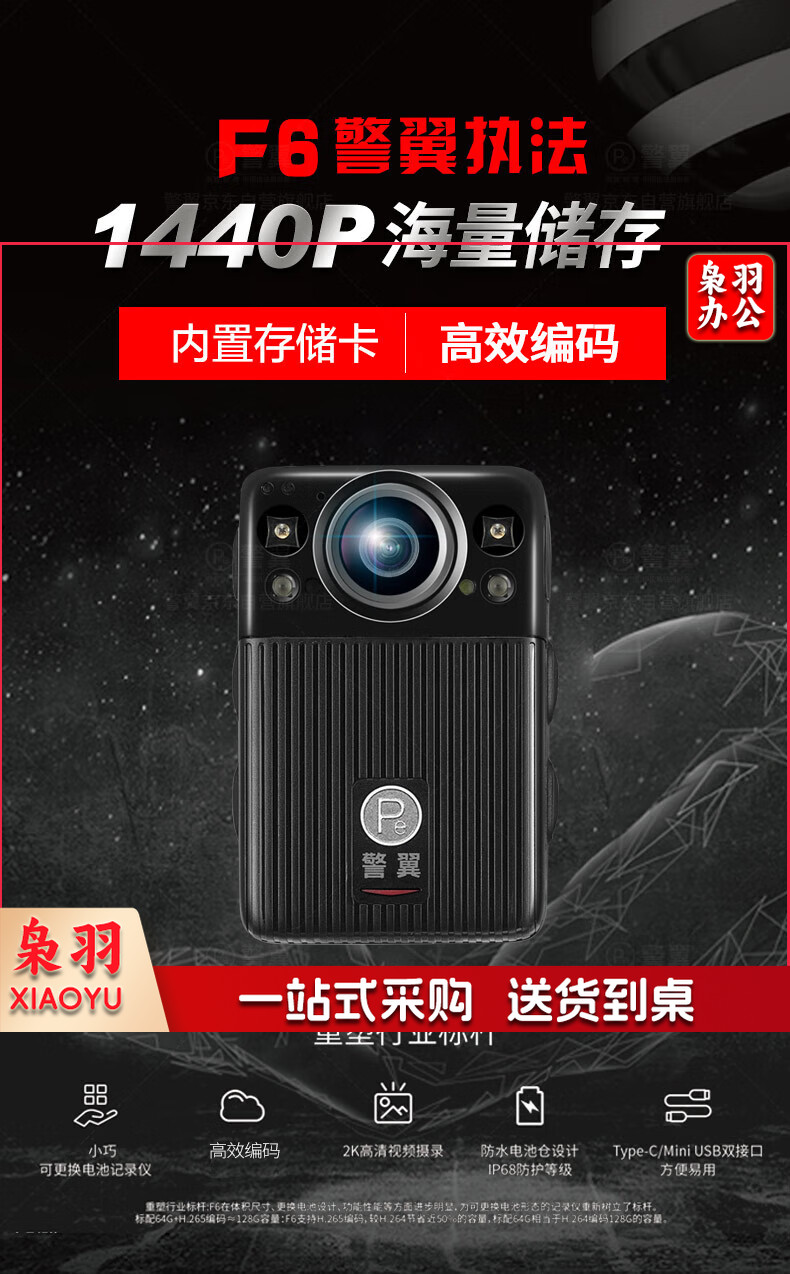 警翼F6执法记录仪1440P高清红外夜视微型14H超长待机快速充电32G版