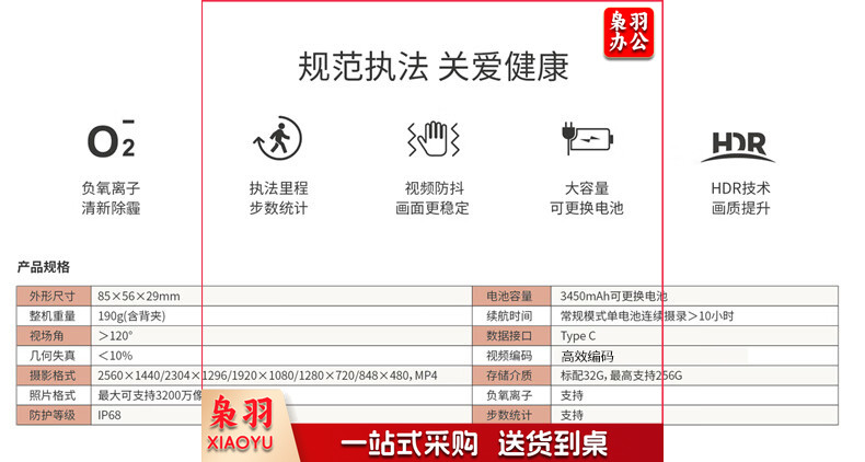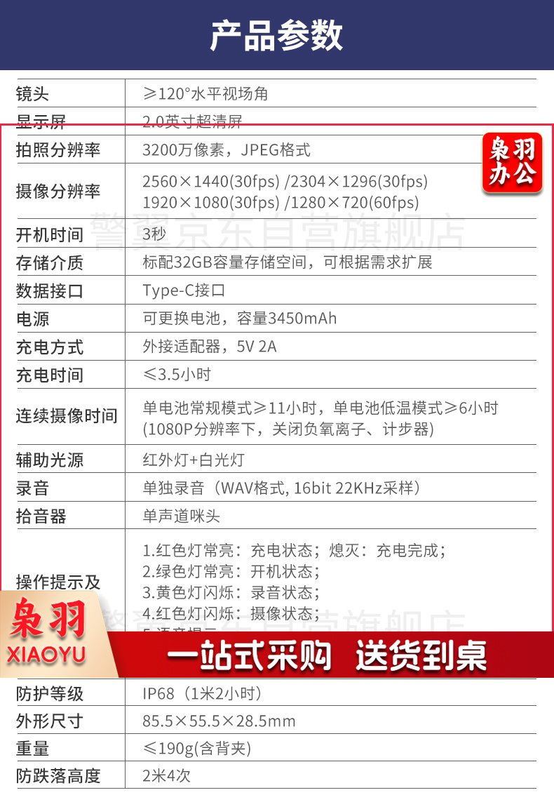 警翼F7执法记录仪1440P超清红外夜视HDR视频防抖高效编码32G