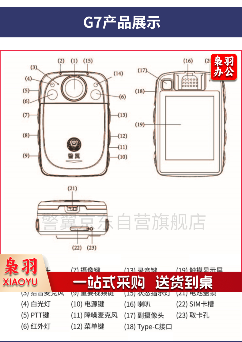警翼G7执法记录仪智能4G小型执法取证记录仪红外夜视GPS定位 64G版