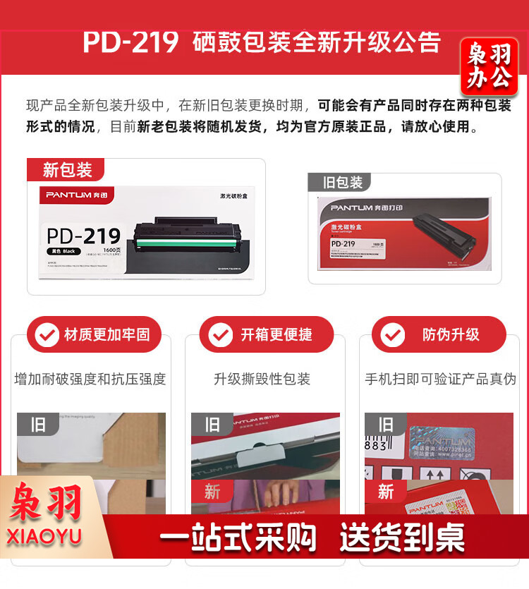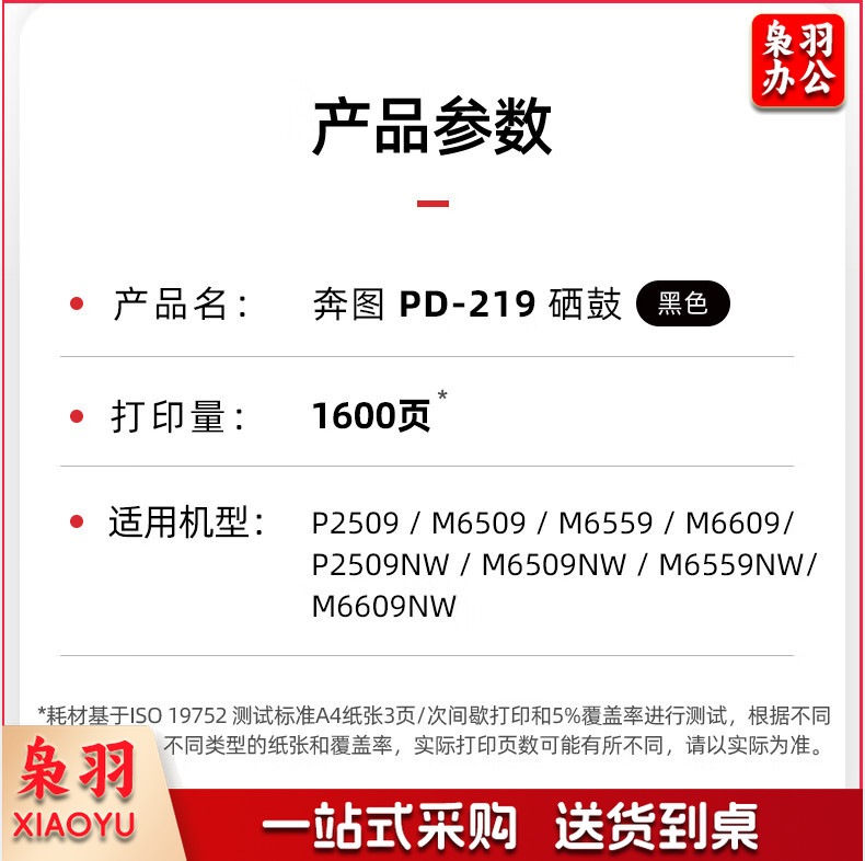 奔图(PANTUM)PD-219原装硒鼓适用P2509 P2509NW碳粉盒M6509 M6509NW M6559 M6559NW M6609 M6609NW打印机墨盒