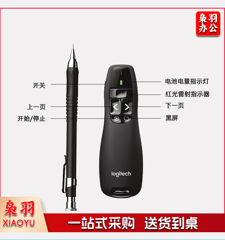 罗技(Logitech)R400 无线演示器 ppt翻页笔 演示笔(激光笔)电子笔 投影仪遥控笔