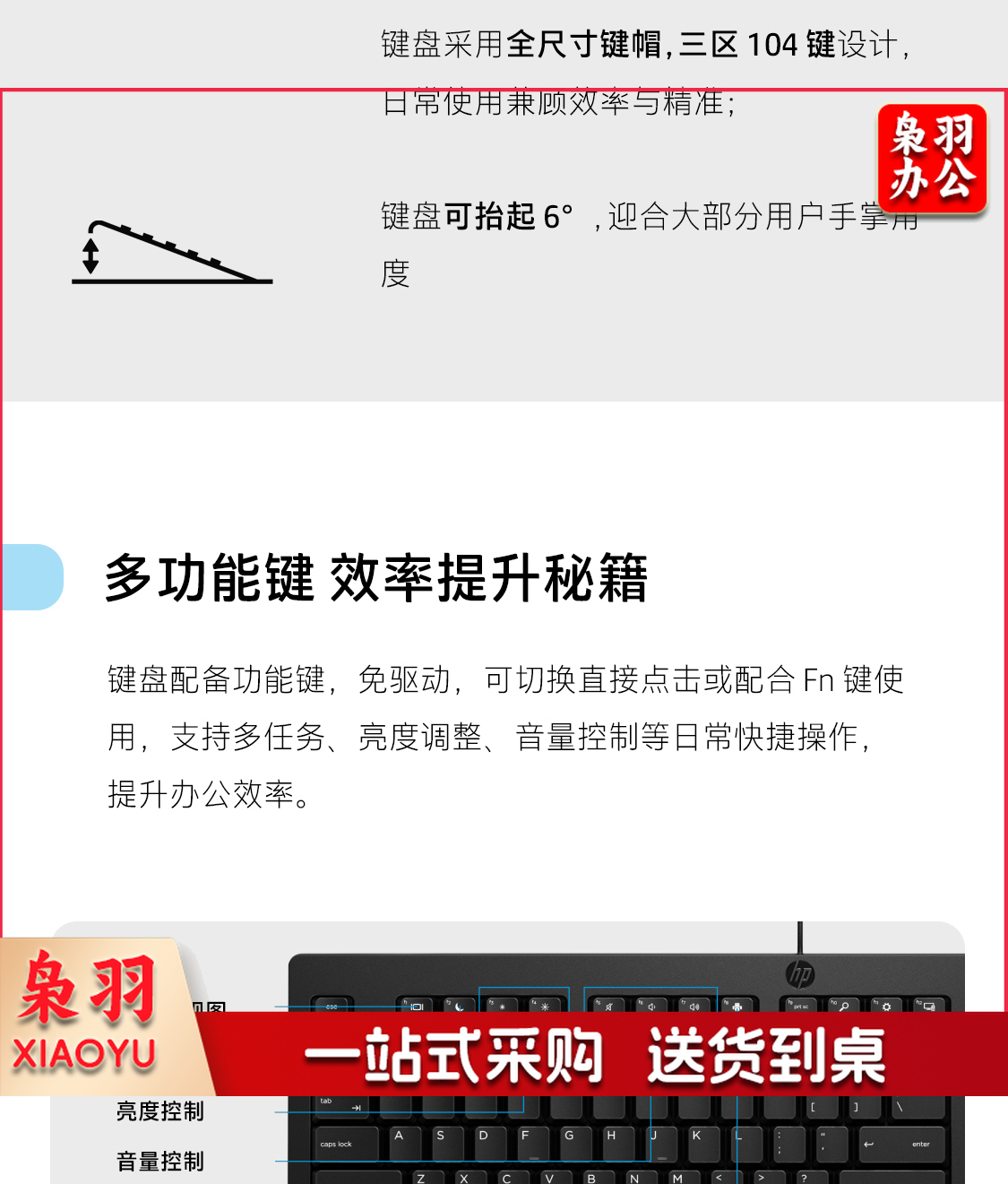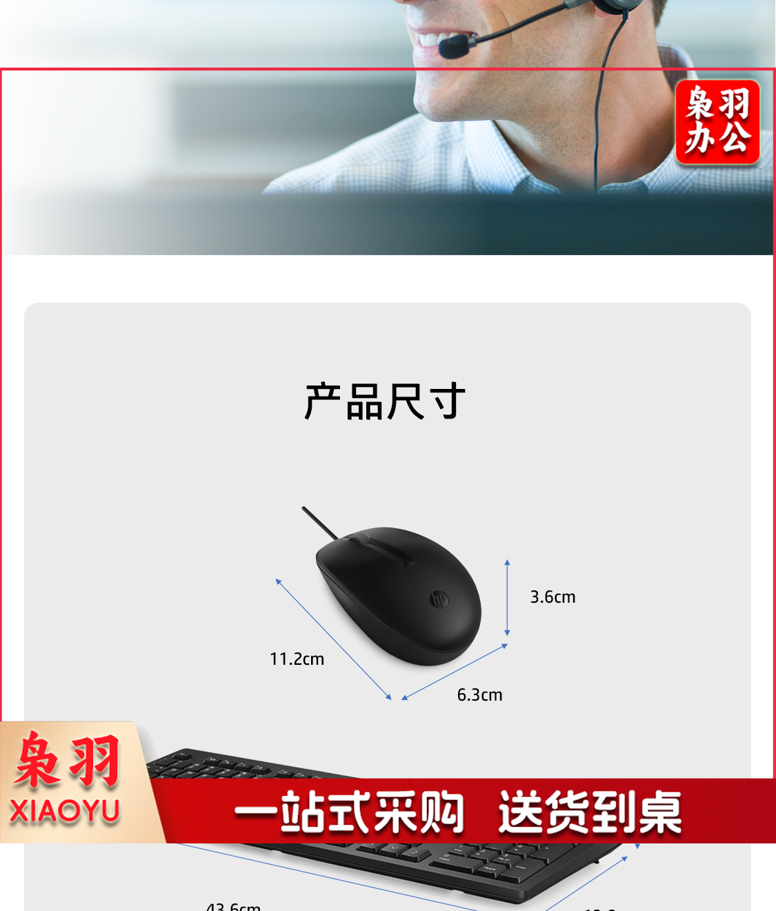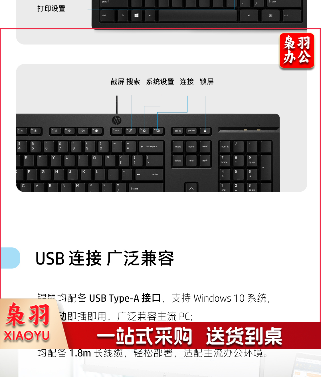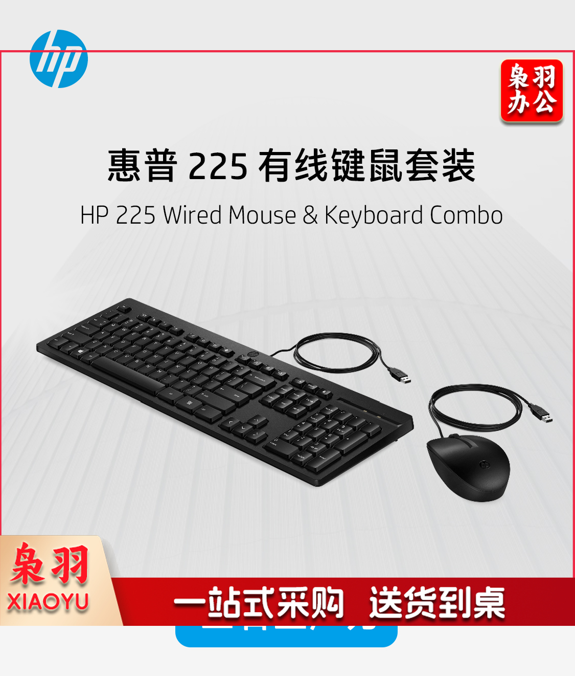 惠普(HP)商用225有线键鼠套装 笔记本台式机USB接口键盘鼠标套装 104键标准键盘 黑色