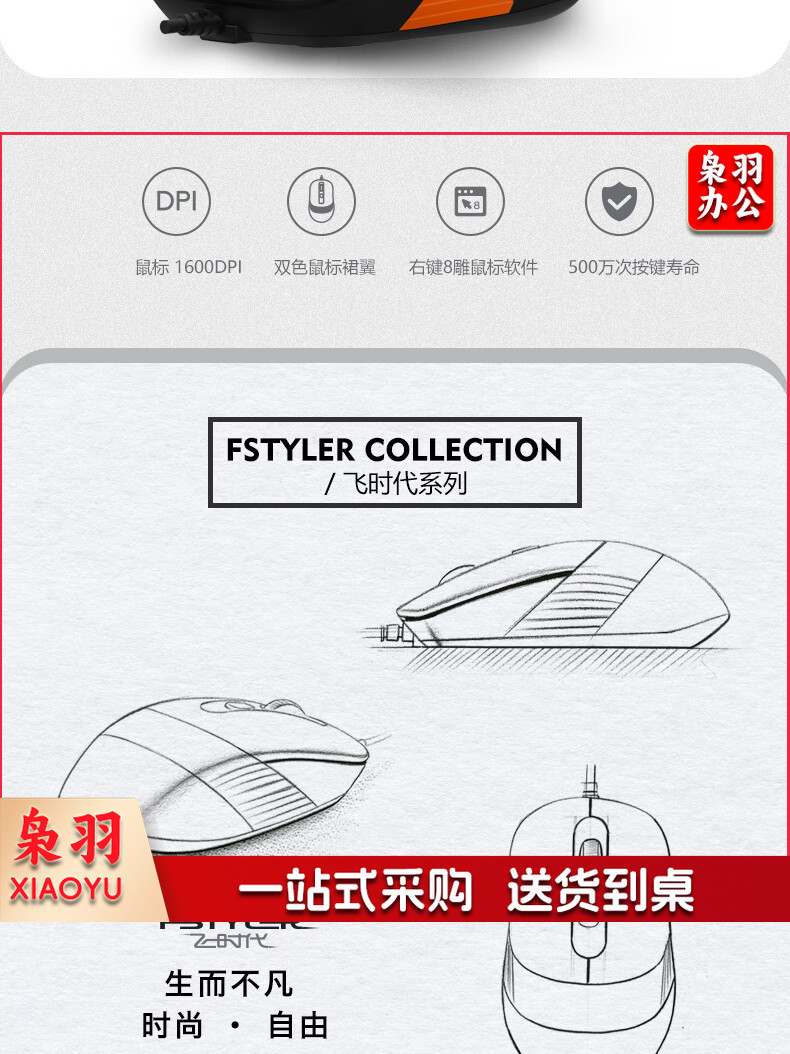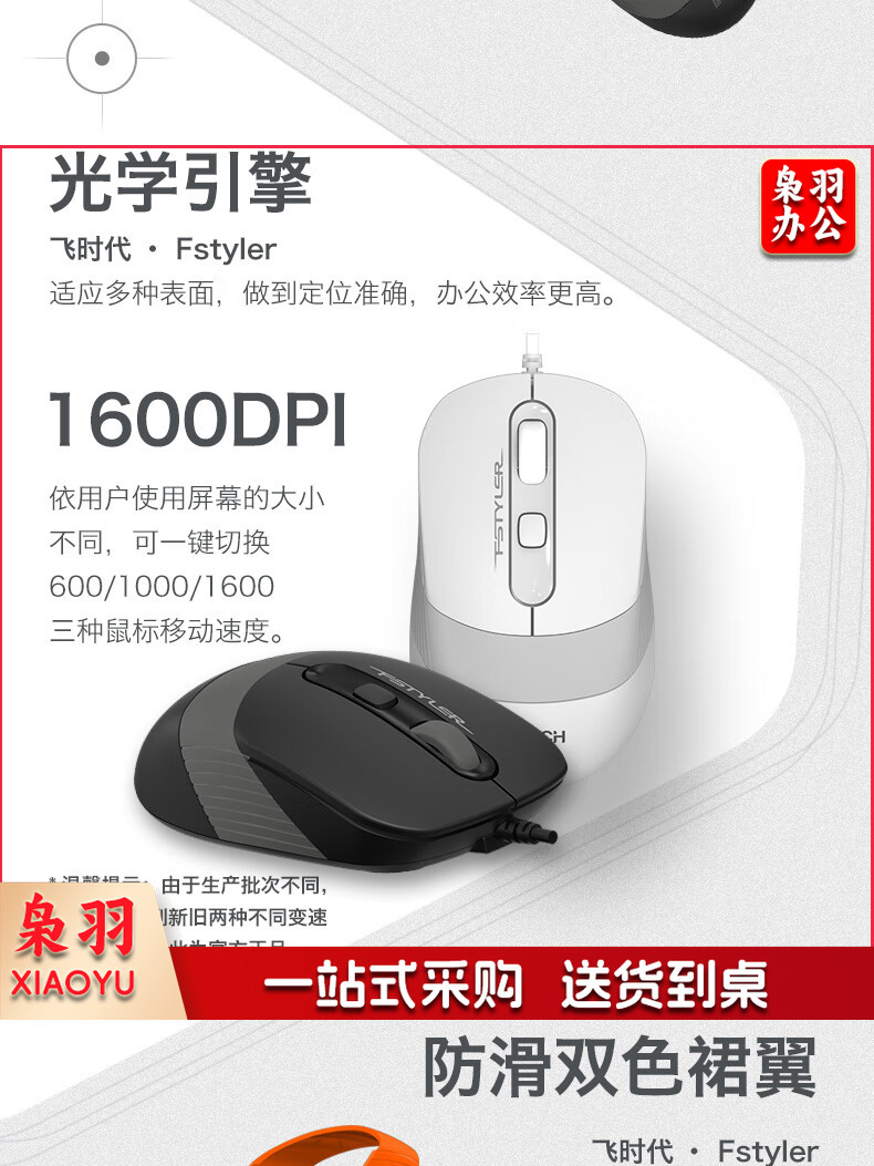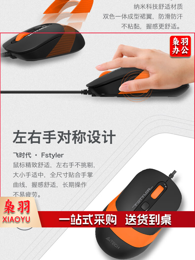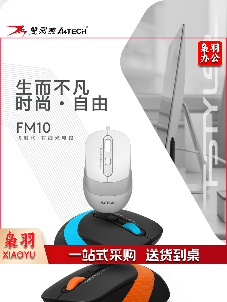双飞燕(A4TECH)FM10 鼠标 有线鼠标 办公鼠标 便携鼠标 对称鼠标 防滑双色裙翼 时尚 遂空灰