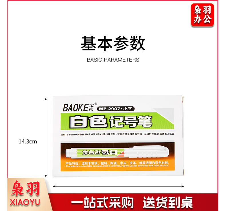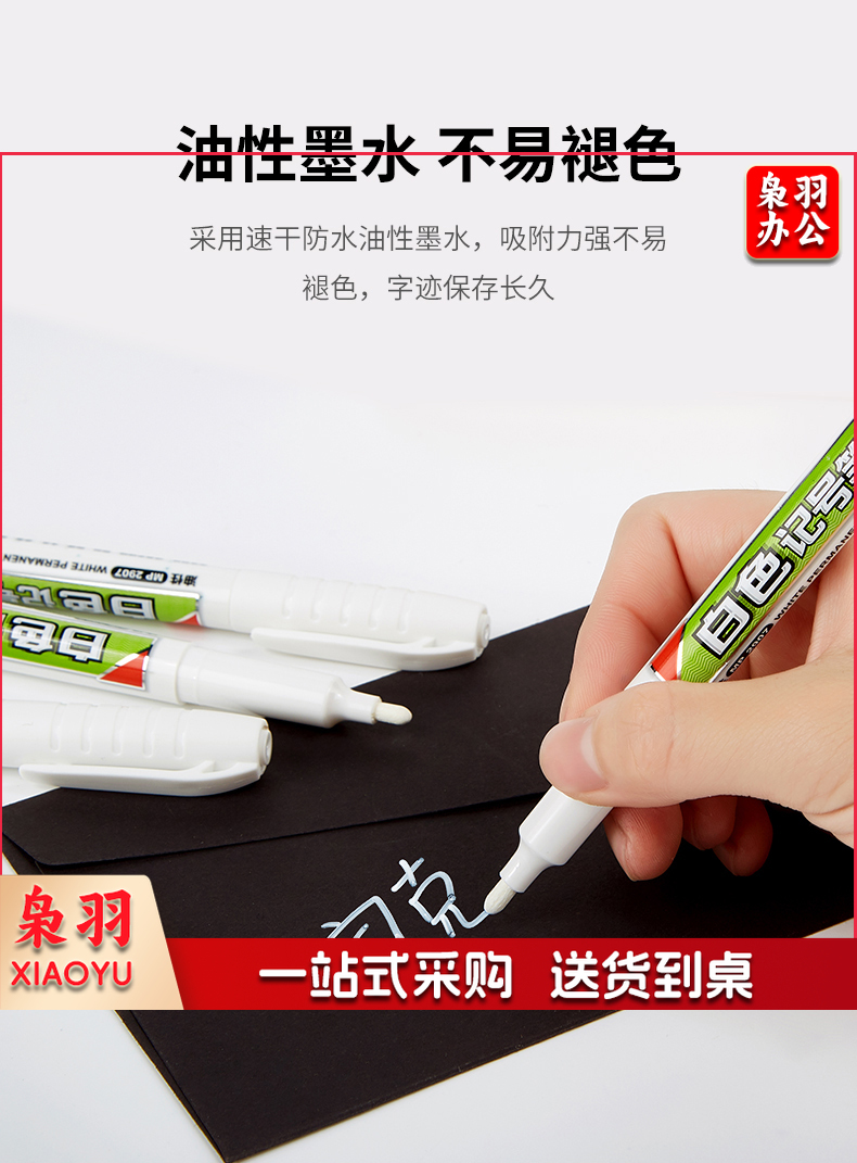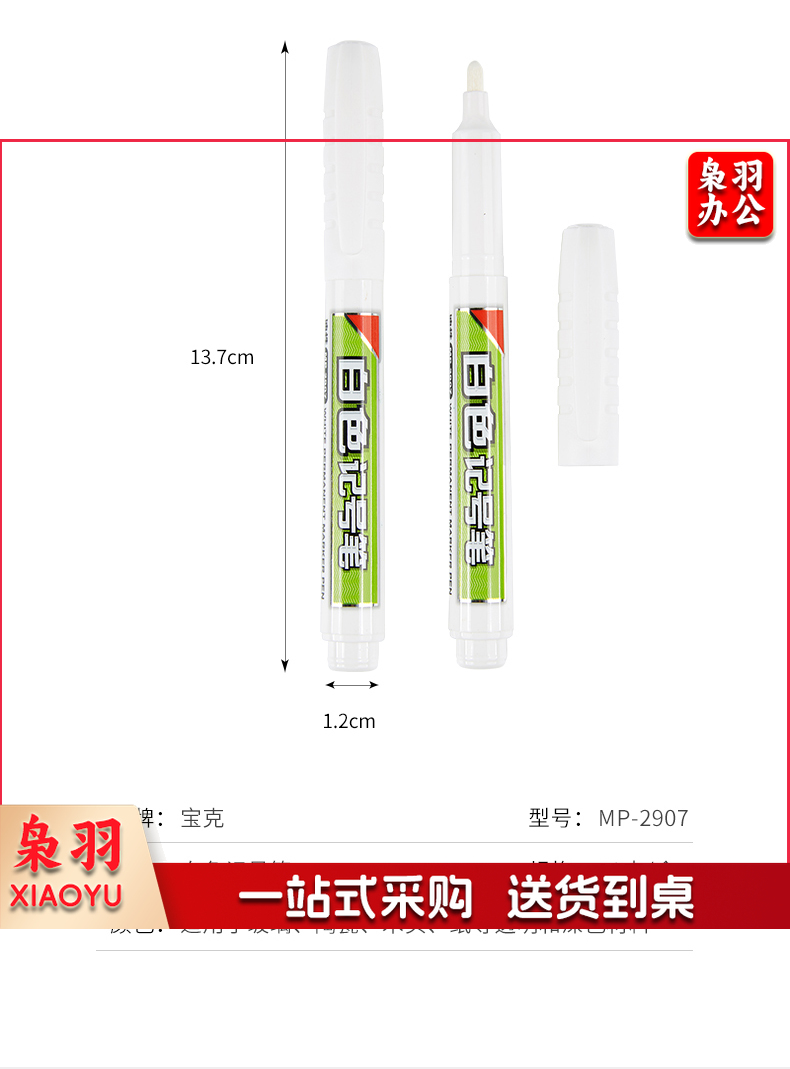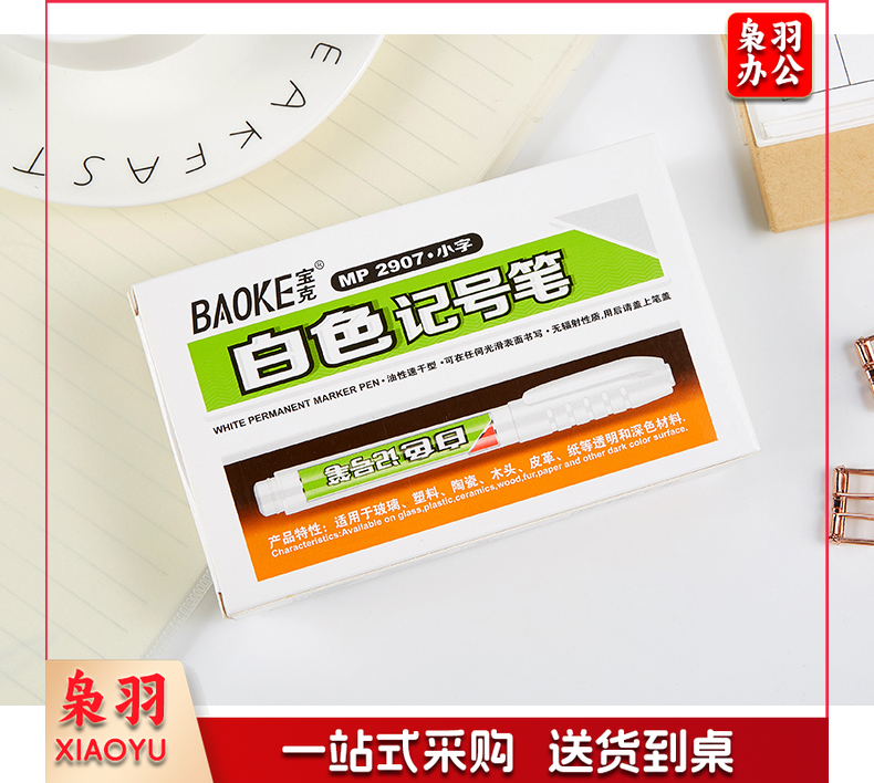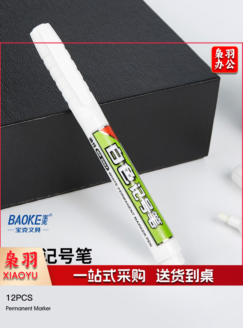 宝克(BAOKE) 白色记号笔 细头签名笔签到笔 油性防水不掉色 高光绘画笔 美术广告勾线标记笔 12支 MP2907