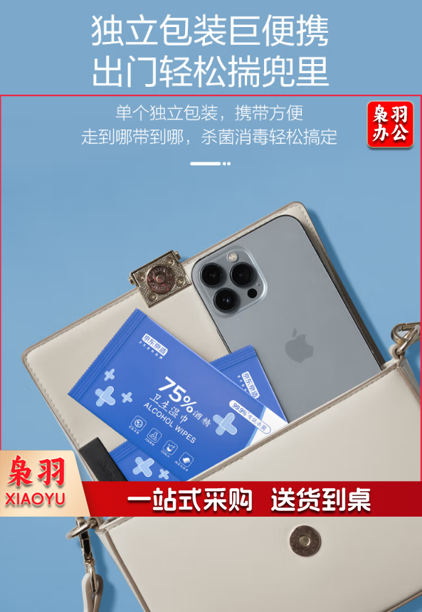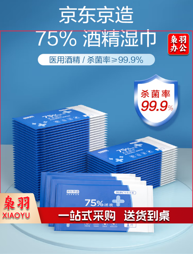 京东京造 75%酒精湿巾独立装50片 杀菌湿巾 湿纸巾 酒精棉片 杀菌率99.9% 5件起订