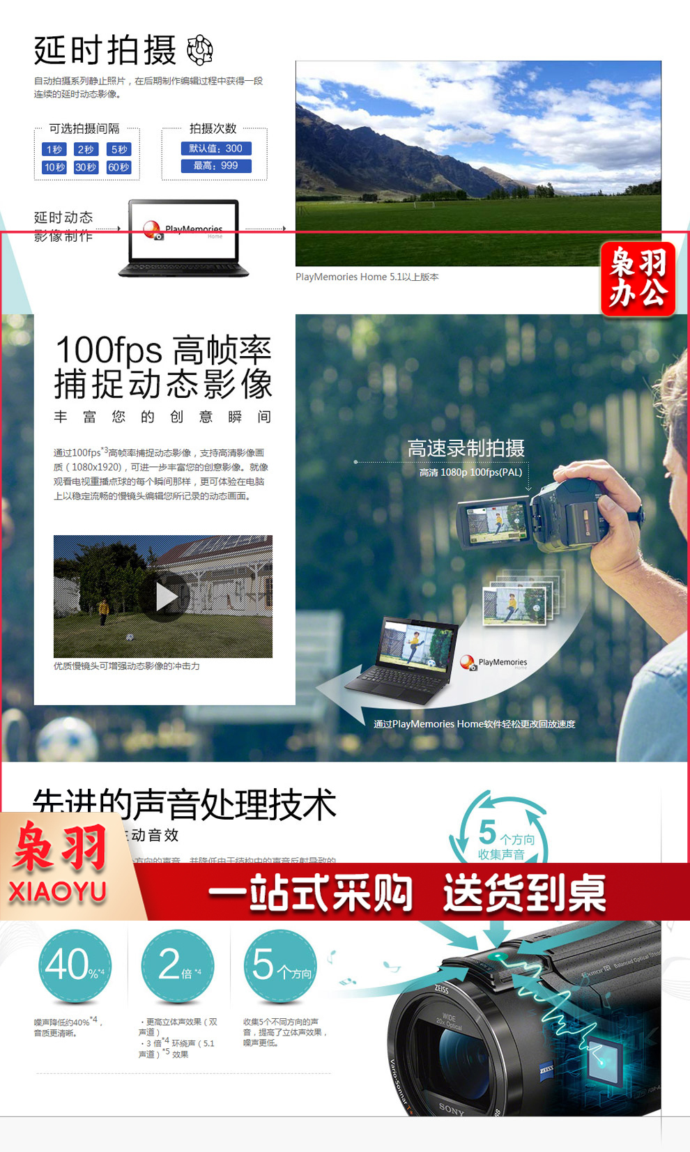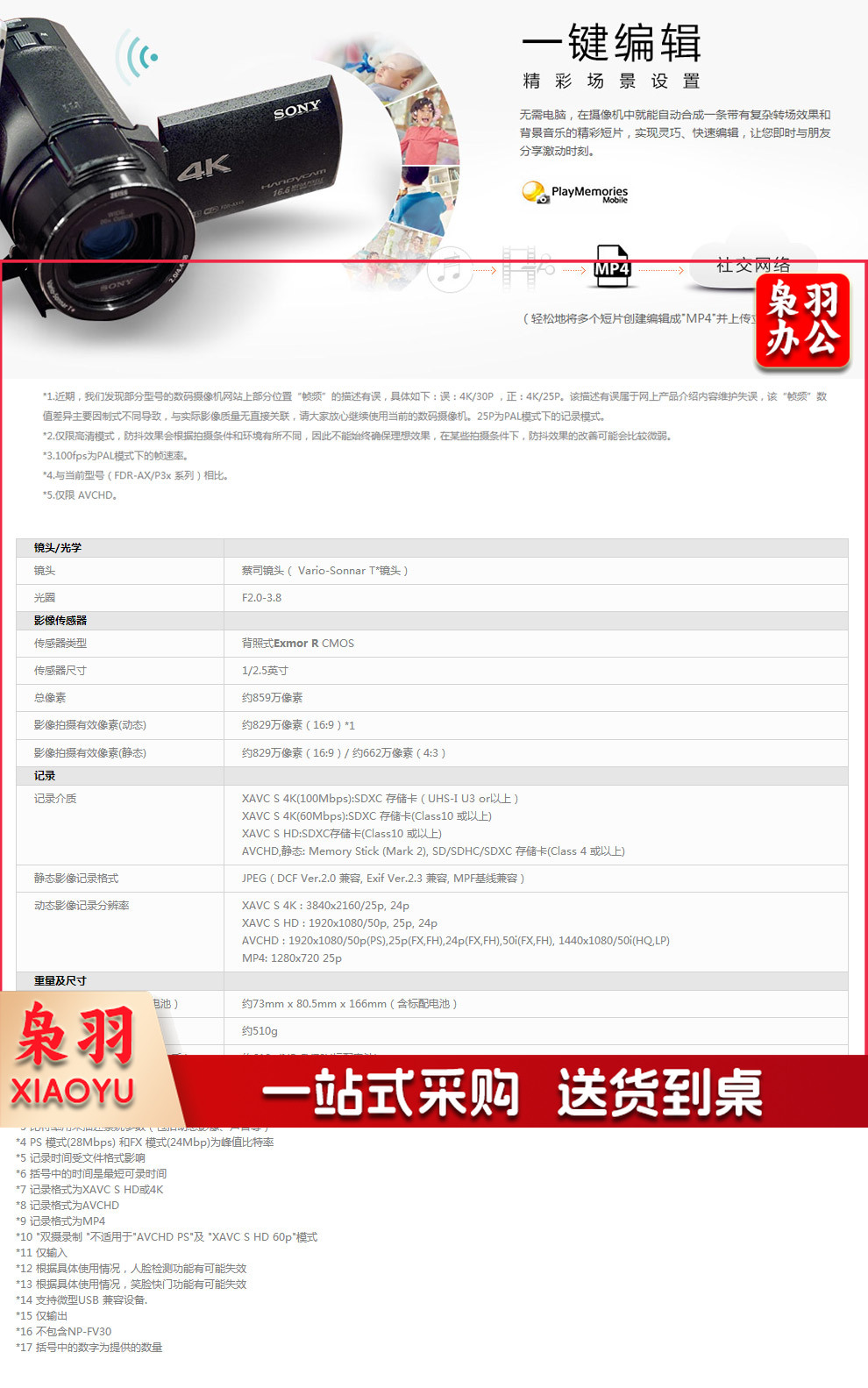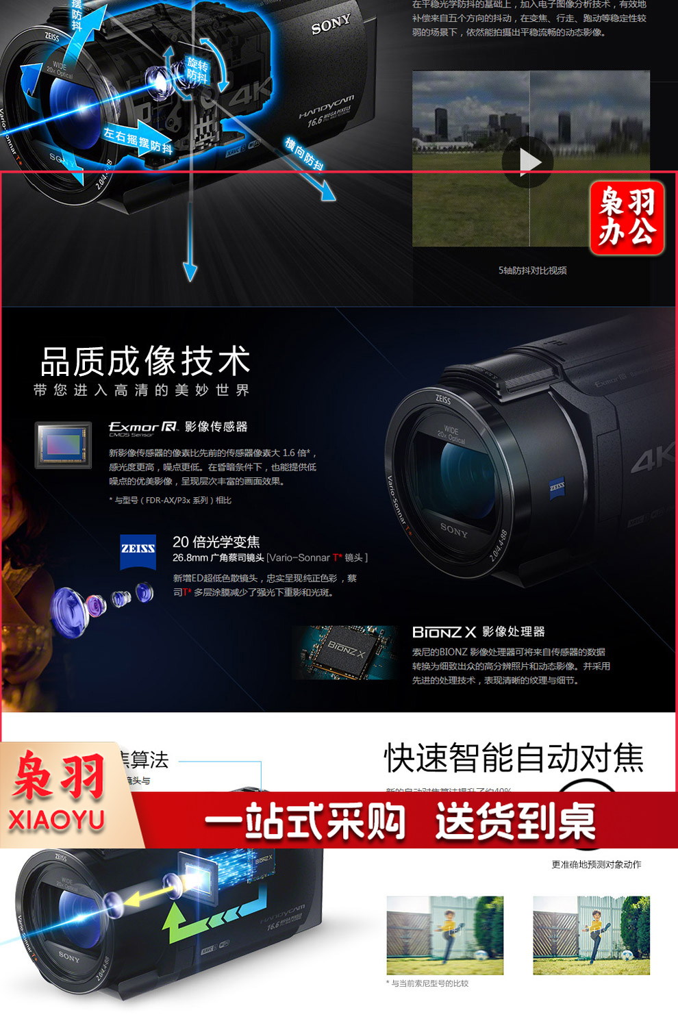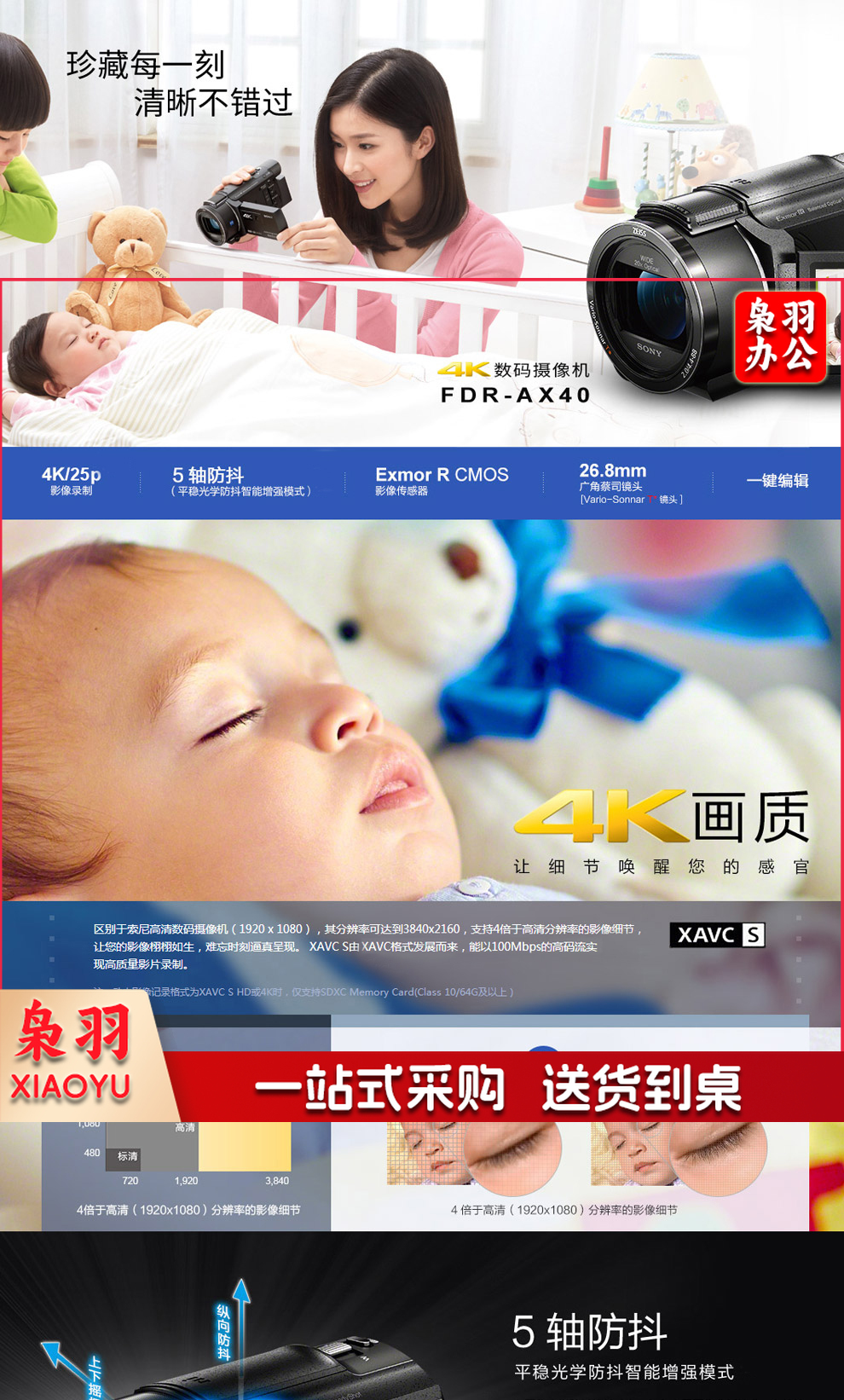 索尼(SONY) FDR-AX40 4K 高清数码摄像机 家用DV机 (内置64G内存) 单机身官方标配