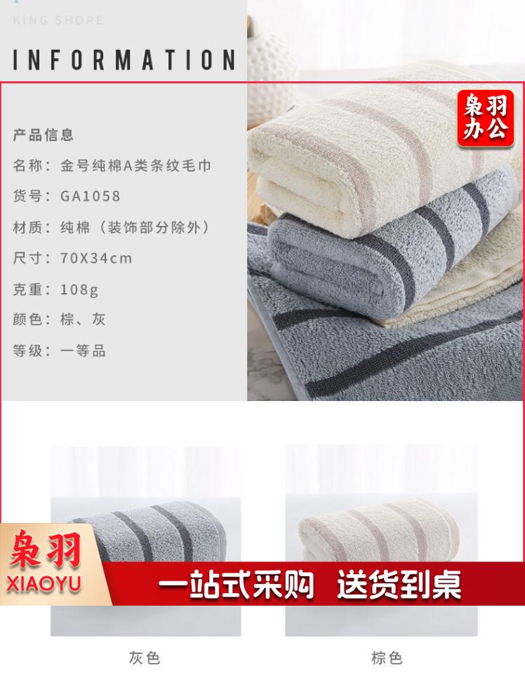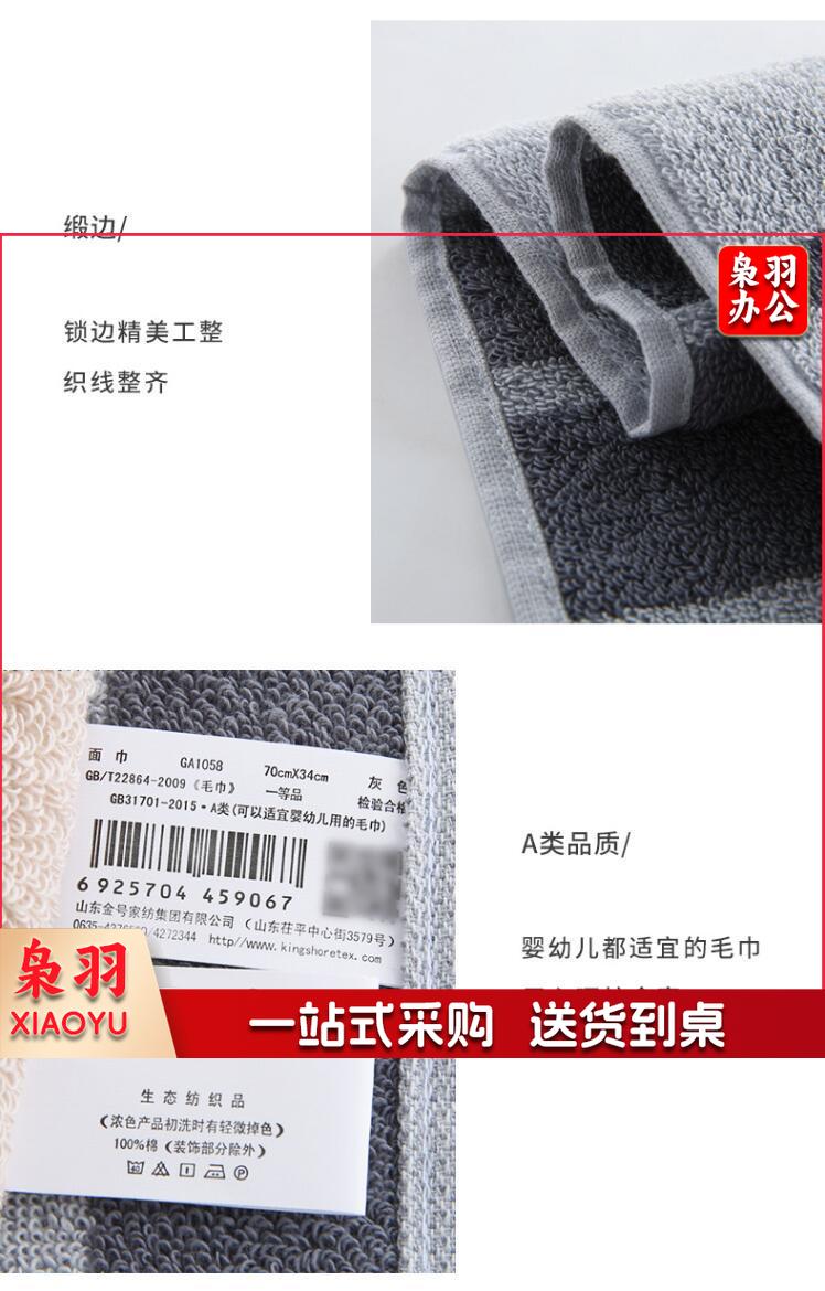 金号纯棉毛巾 厚实吸水耐用 70*34CM 108克 GA1058 灰色