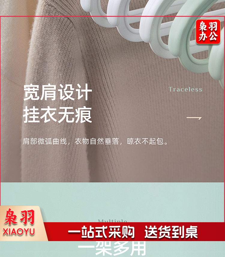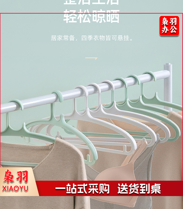 茶花大衣架子 宽肩无痕家用晒衣架 挂钩架衣服撑子 晾衣撑架塑料衣挂架 3只装西装家用挂衣架 绿色101004