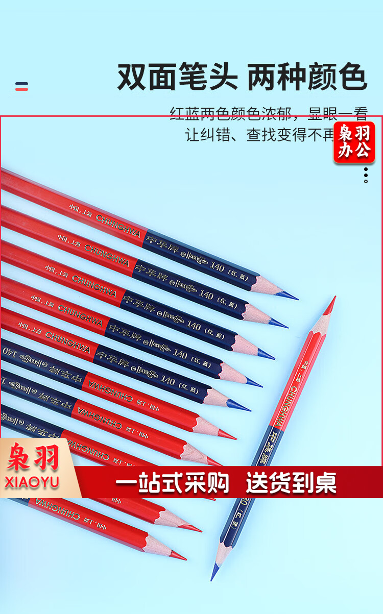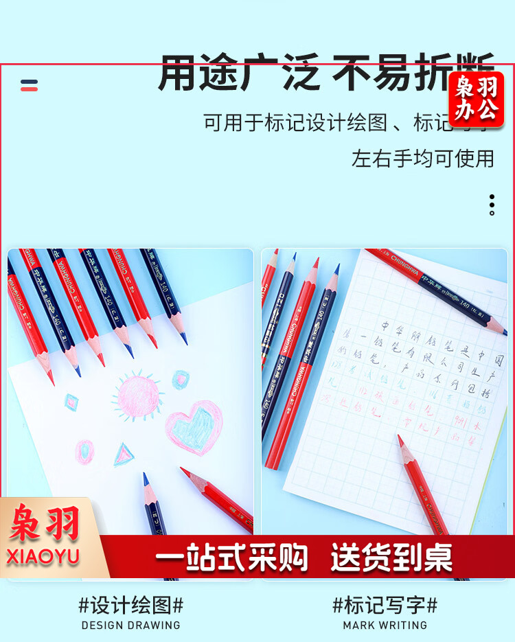 中华 120-红蓝 红蓝铅笔设计绘图施工放线 特种铅笔圆杆50支/盒 1盒起售