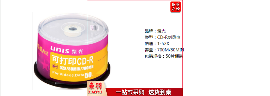 清华紫光 CD-R亚光系列空白光盘/刻录盘 可打印 桶装50片