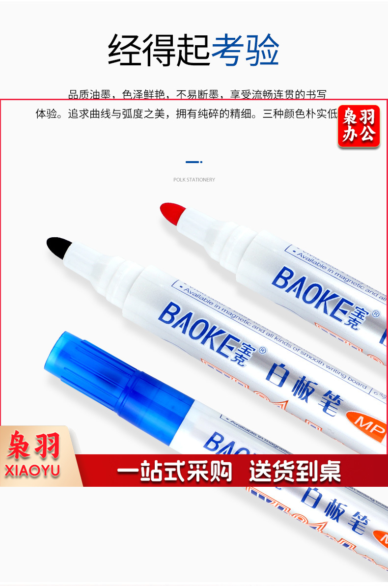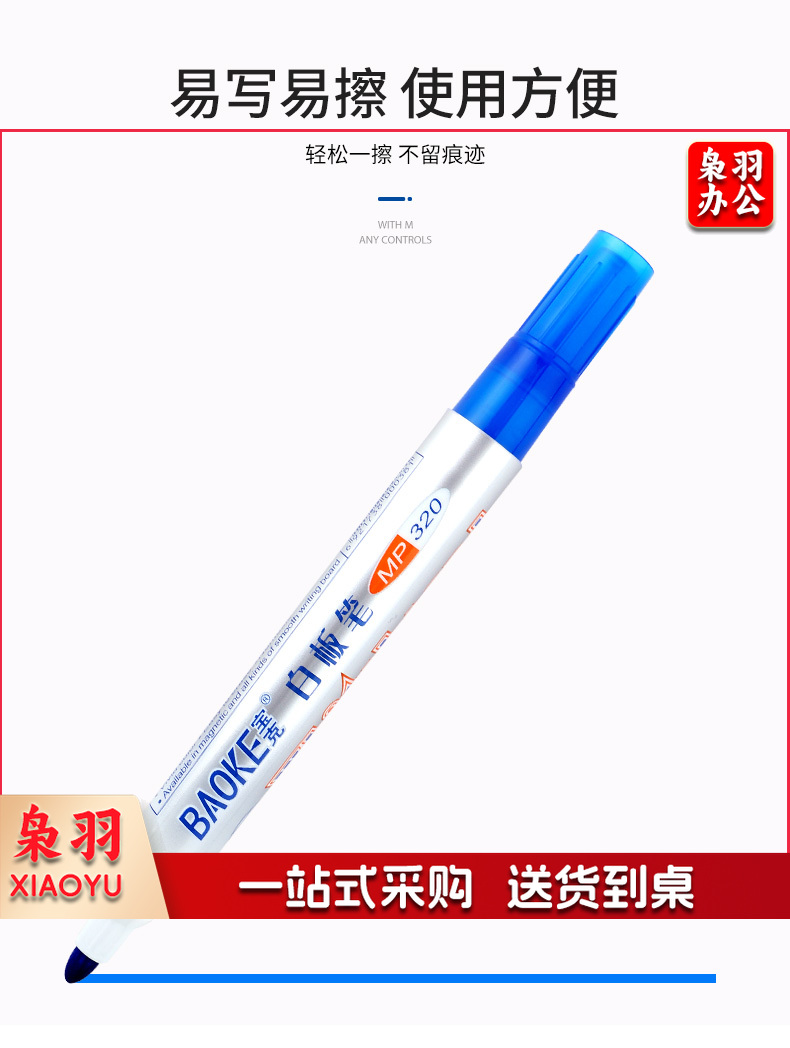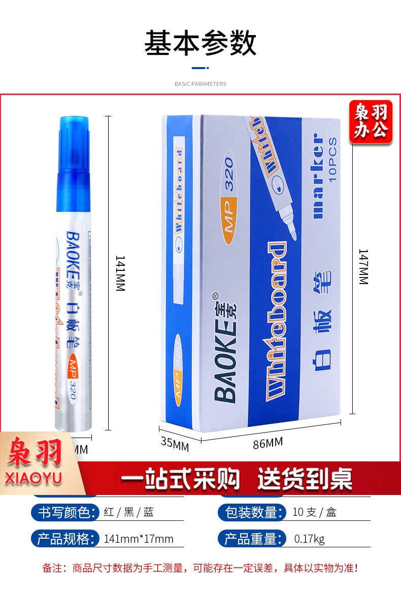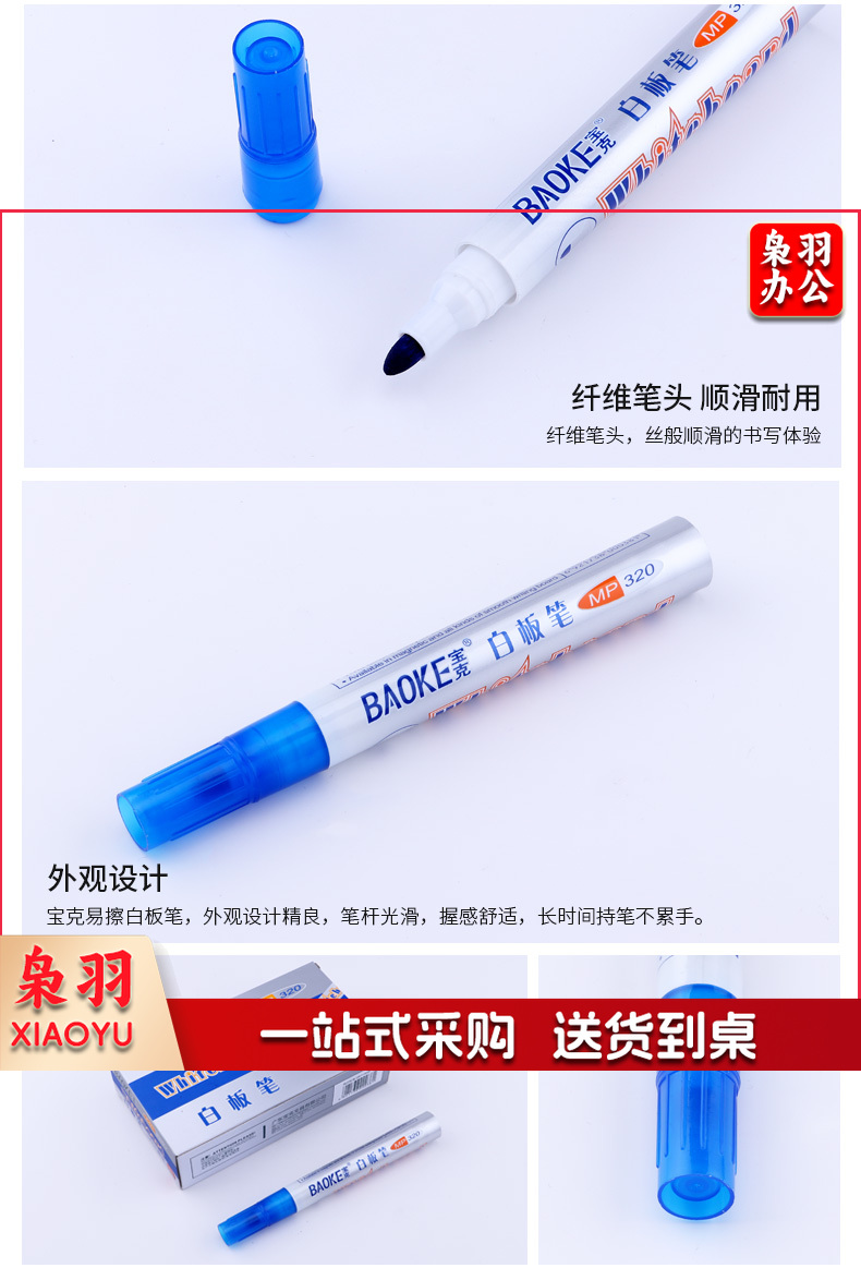 宝克(BAOKE)MP320 办公会议教学白板笔可擦易擦 蓝色10支/盒