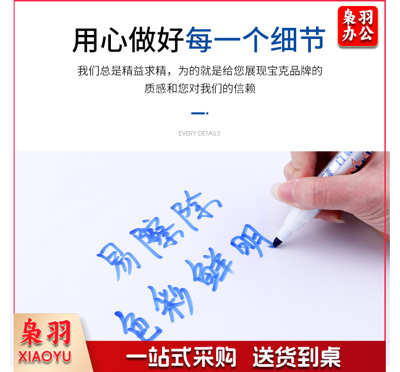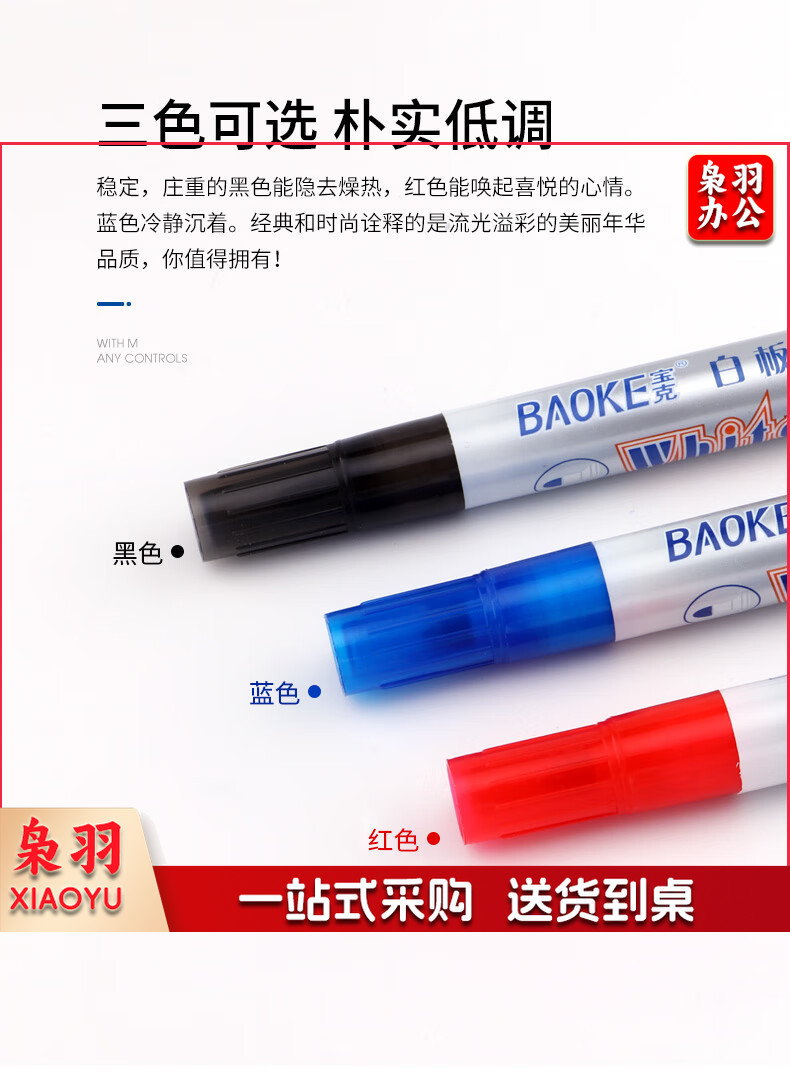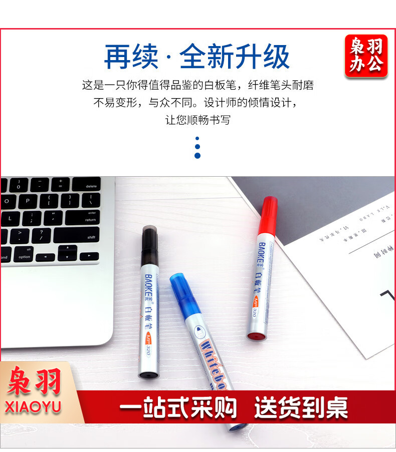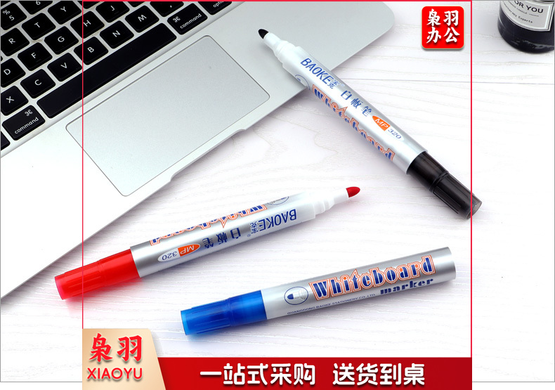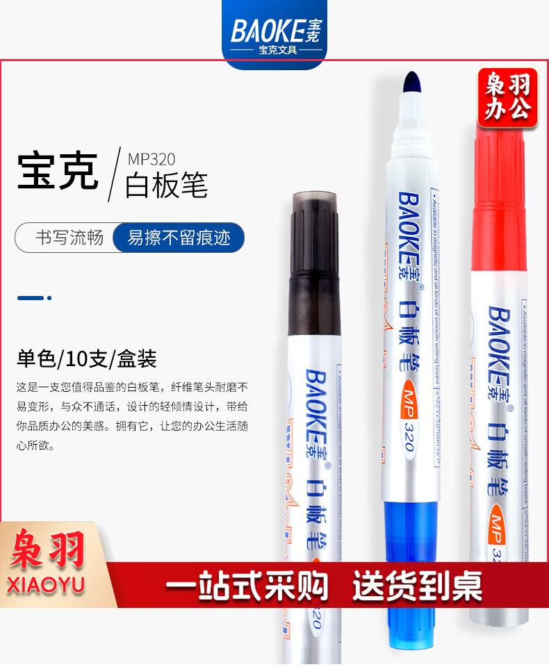 宝克(BAOKE)MP320 办公会议教学白板笔可擦易擦 蓝色10支/盒