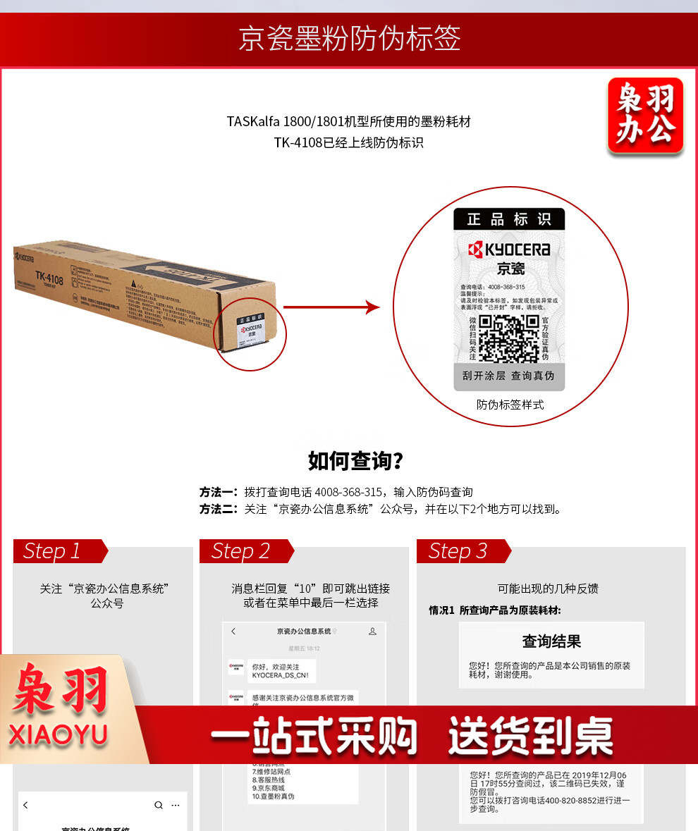 京瓷 (Kyocera) TK-4108墨粉盒 适用于京瓷1800 1801