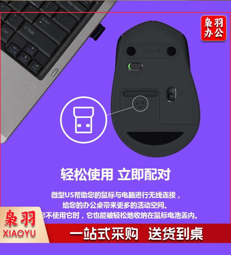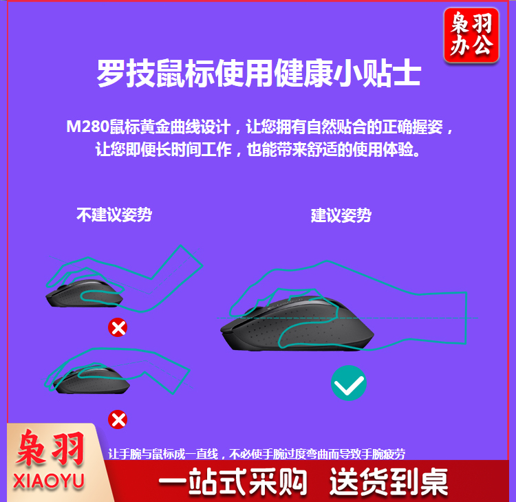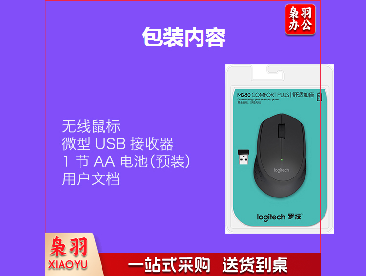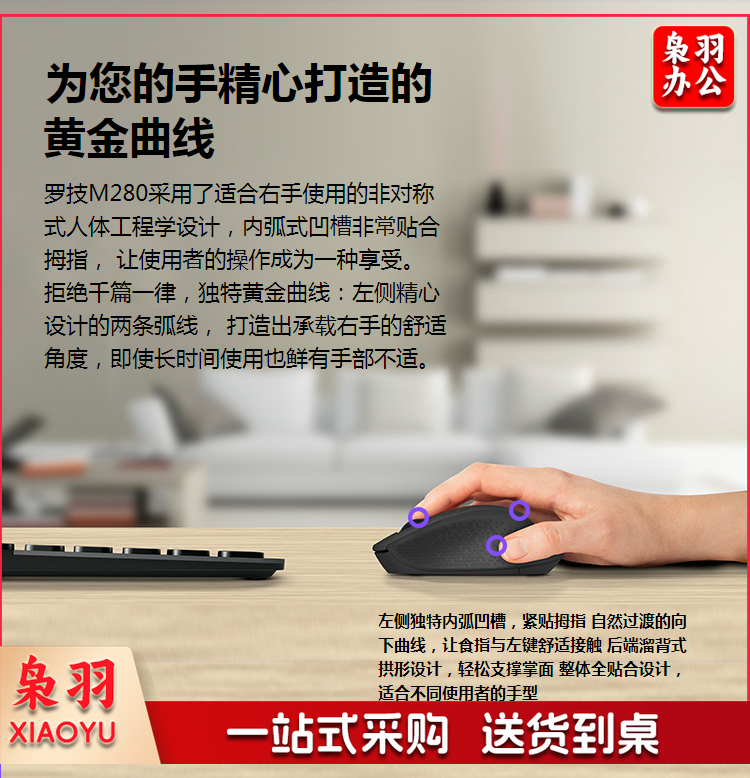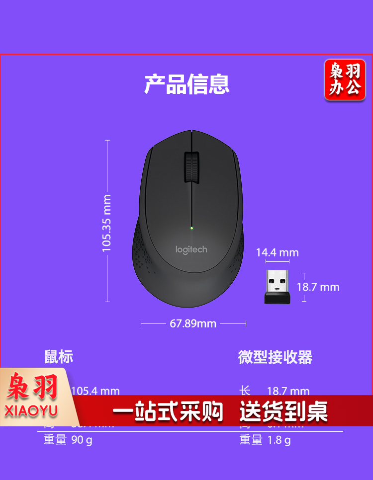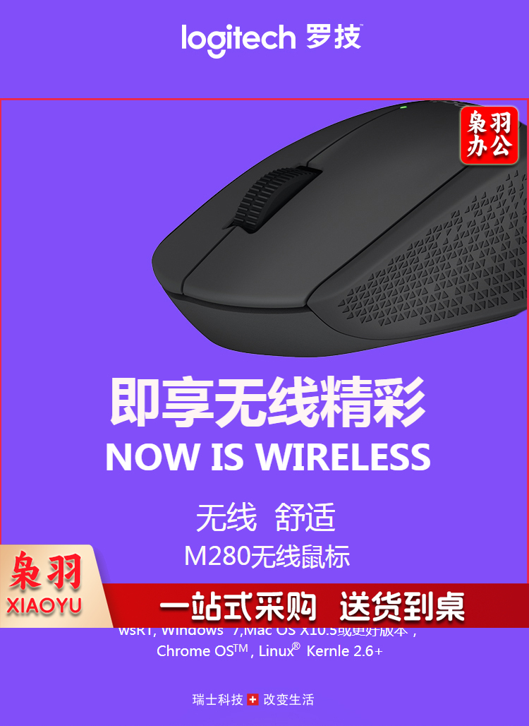 罗技(Logitech)M280(M275) 鼠标 无线鼠标 办公鼠标 右手鼠标 黑色 带无线2.4G接收器