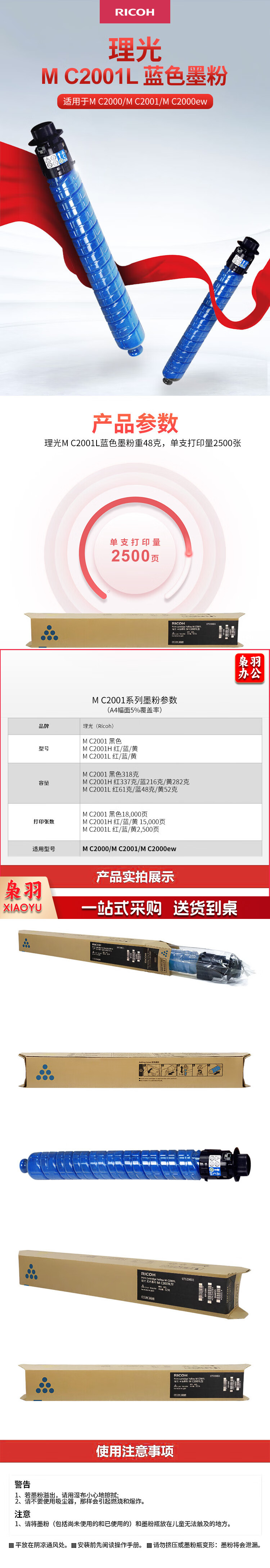 理光(Ricoh)M C2001L 蓝色墨粉盒 适用于M C2000/M C2001/M C2000ew