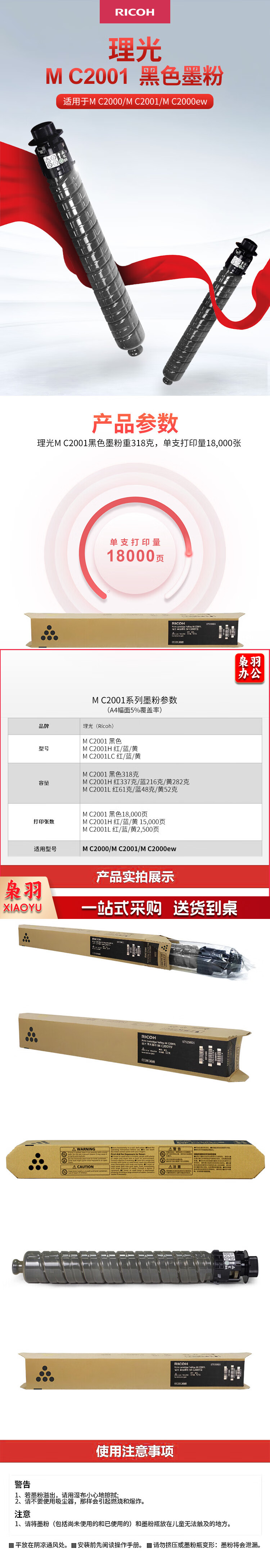 理光(Ricoh)M C2001 黑色墨粉盒 适用于MC2000/MC2001/MC2000ew
