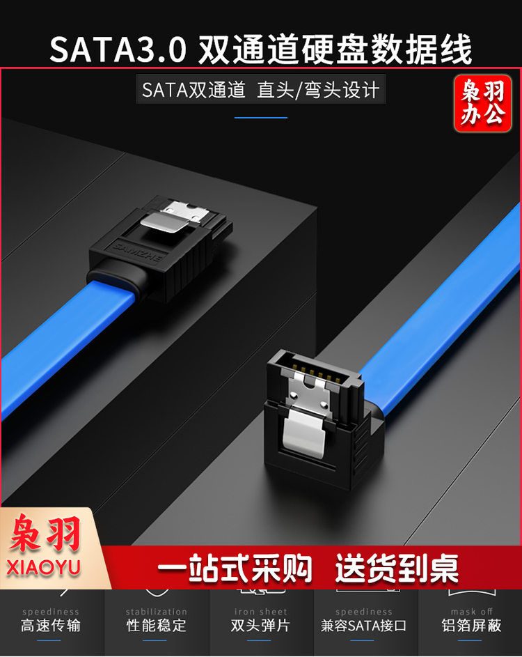 山泽(SAMZHE)高速SATA3代双通道数据线 弯对直 蓝色 0.48米 固态硬盘 SSD数据3UX-05B