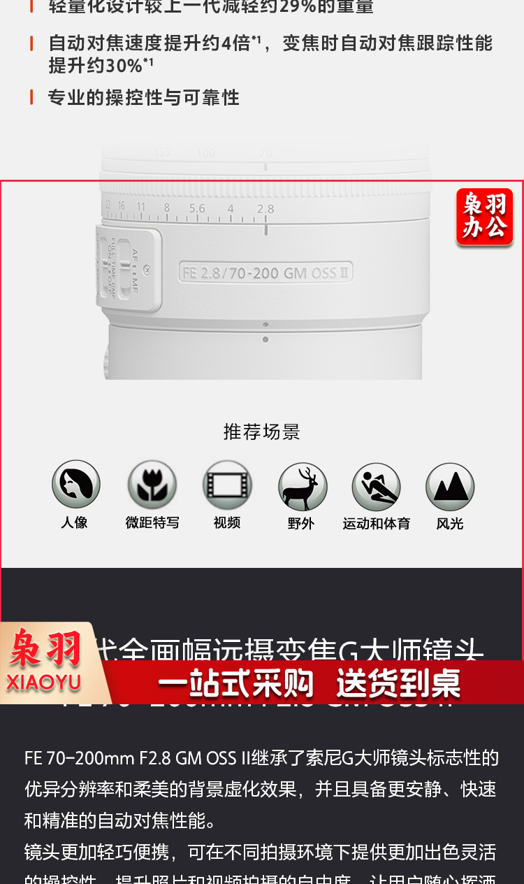 索尼(SONY)FE 70-200mm F2.8 GM OSS II (SEL70200GM2)全画幅远摄变焦G大师镜头