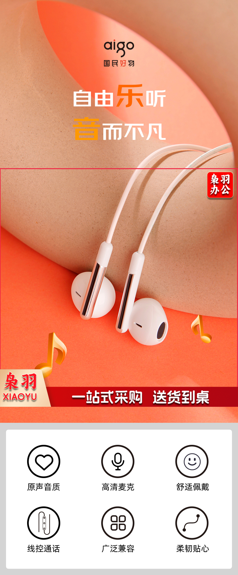 aigo 爱国者A220有线耳机半入耳式 重低音耳机耳麦带麦线控大动圈 通用手机电脑华为苹果适用耳机