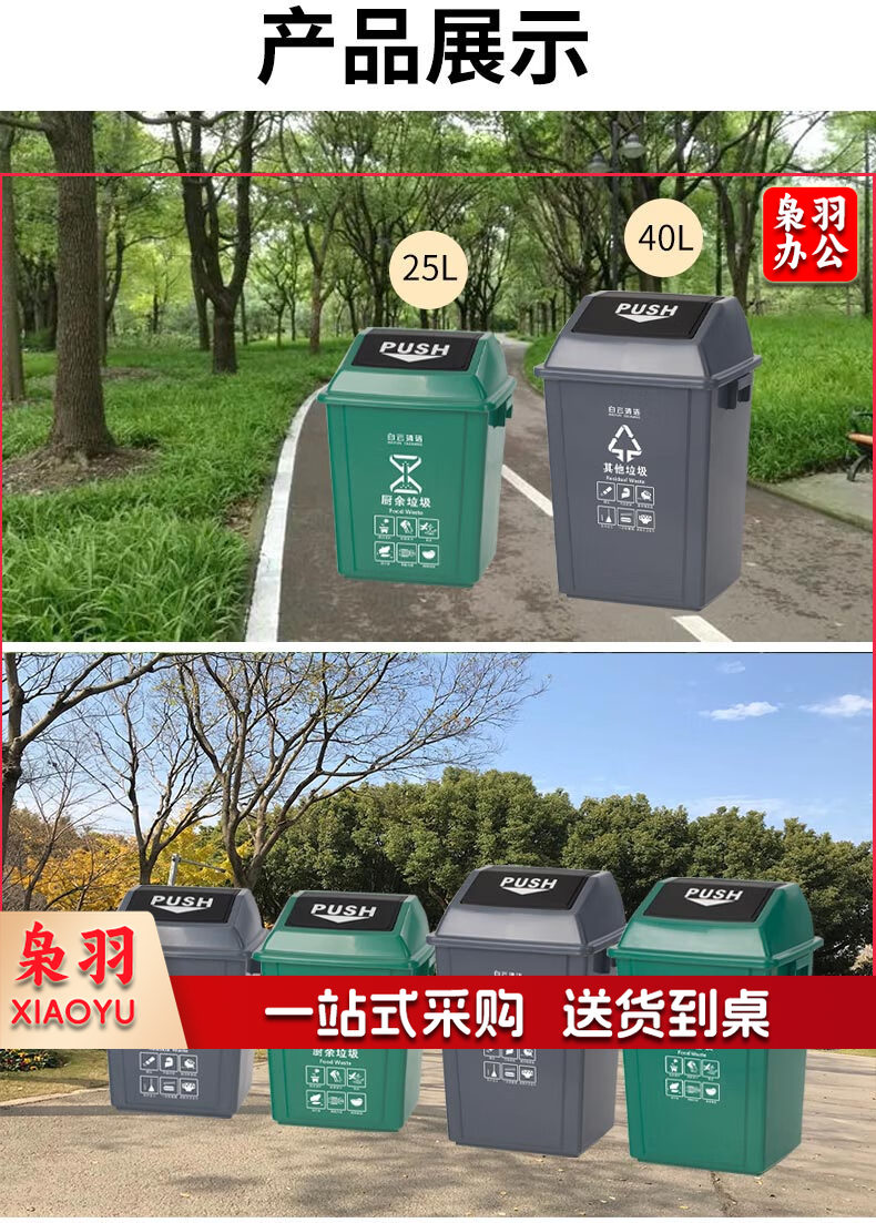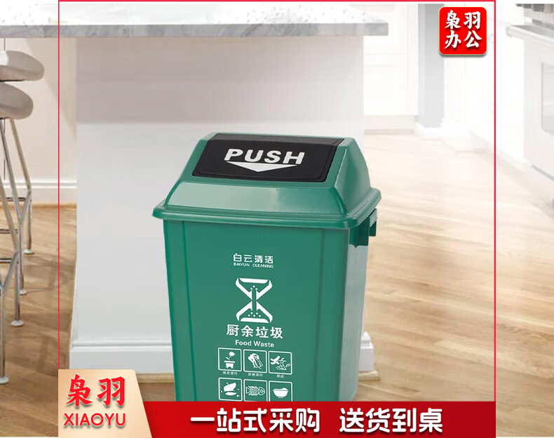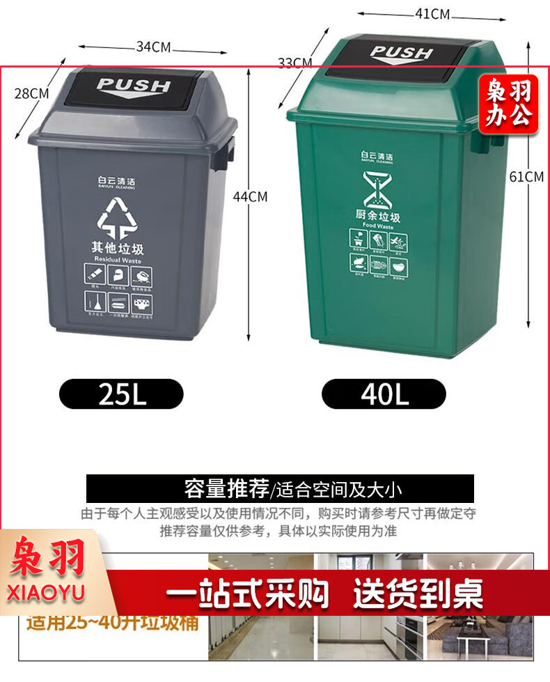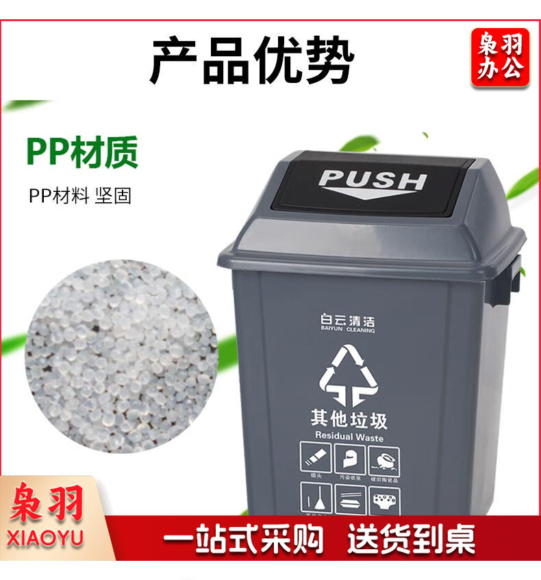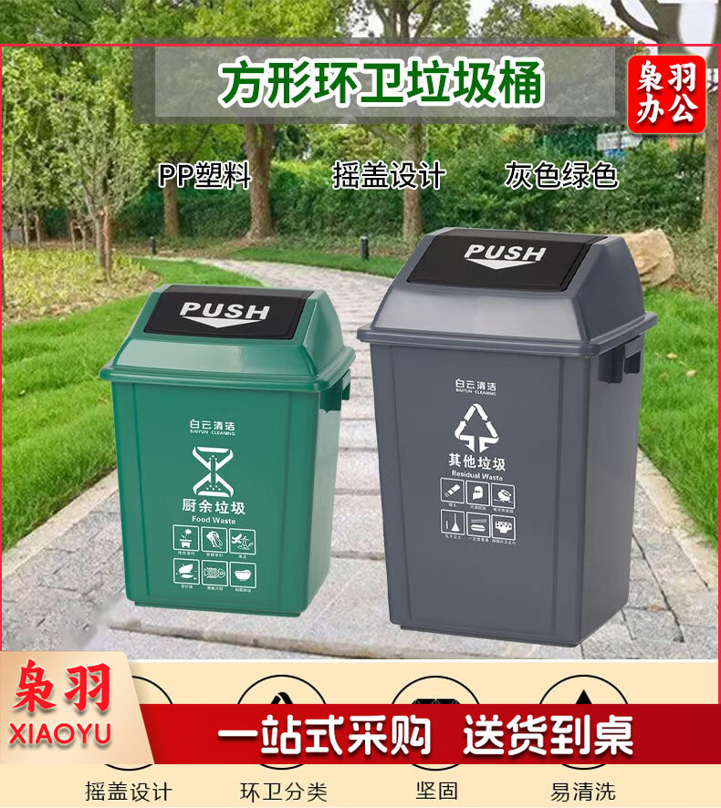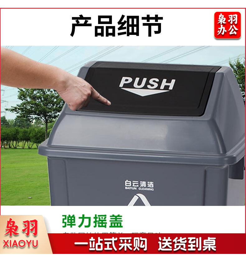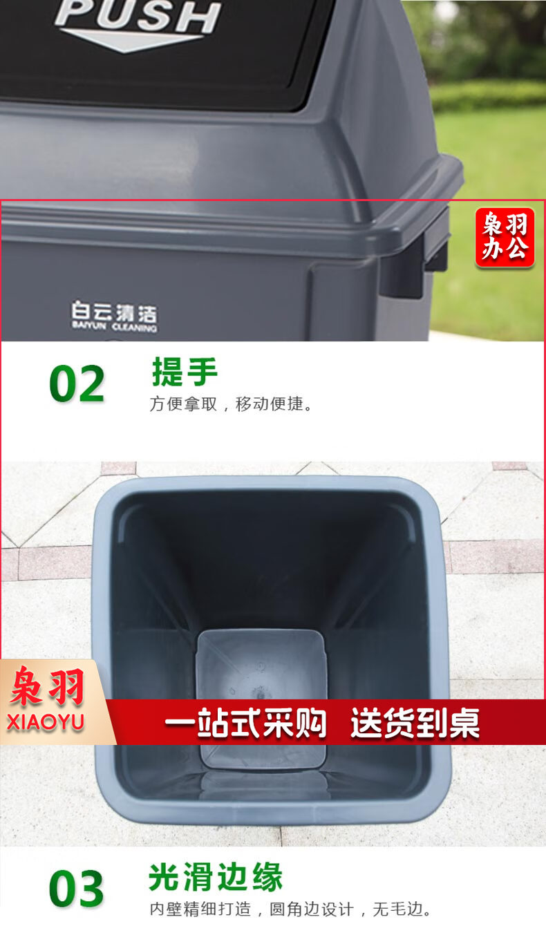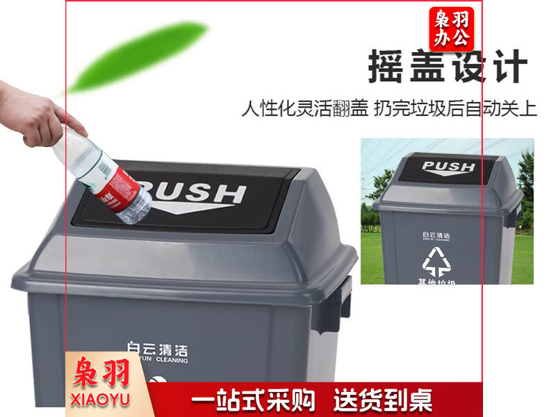 白云清洁 AF07310 25L灰色摇盖垃圾桶方形储物桶物业环卫桶