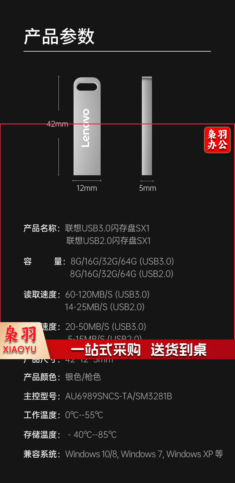 联想(Lenovo)U盘32G USB2.0速芯SX1系列U盘闪存U盘银色