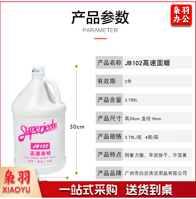 白云清洁(baiyun cleaning)JB102高速面蜡地板蜡大理石瓷砖抛光蜡打蜡水 3.78L*4瓶